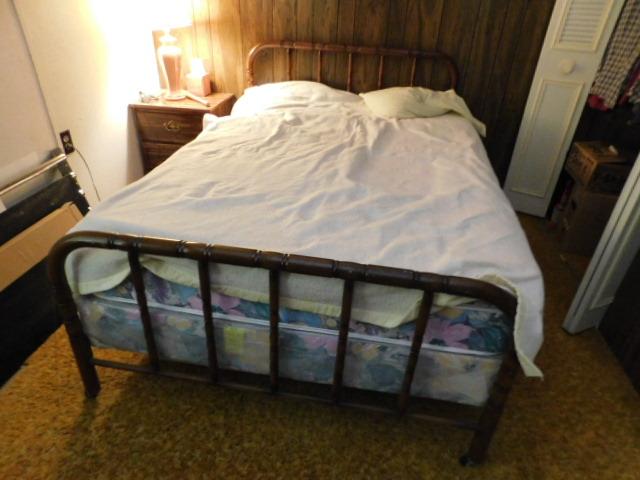 Vintage Metal Faux Wood Frame Full Size Bed and Mattress Set 51"