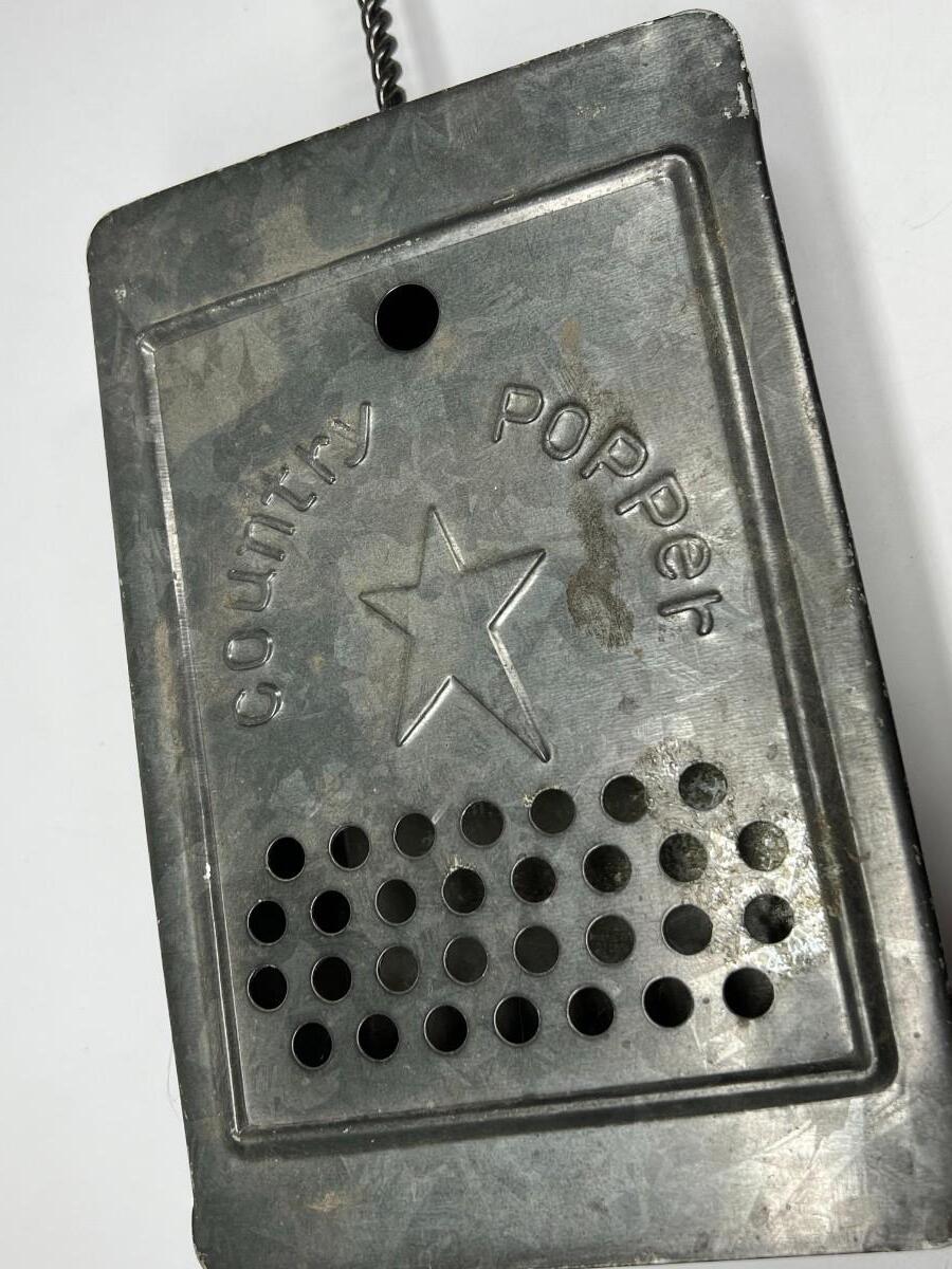 Vintage Metal Fireplace Camping Campfire Country Popper Popcorn Tin