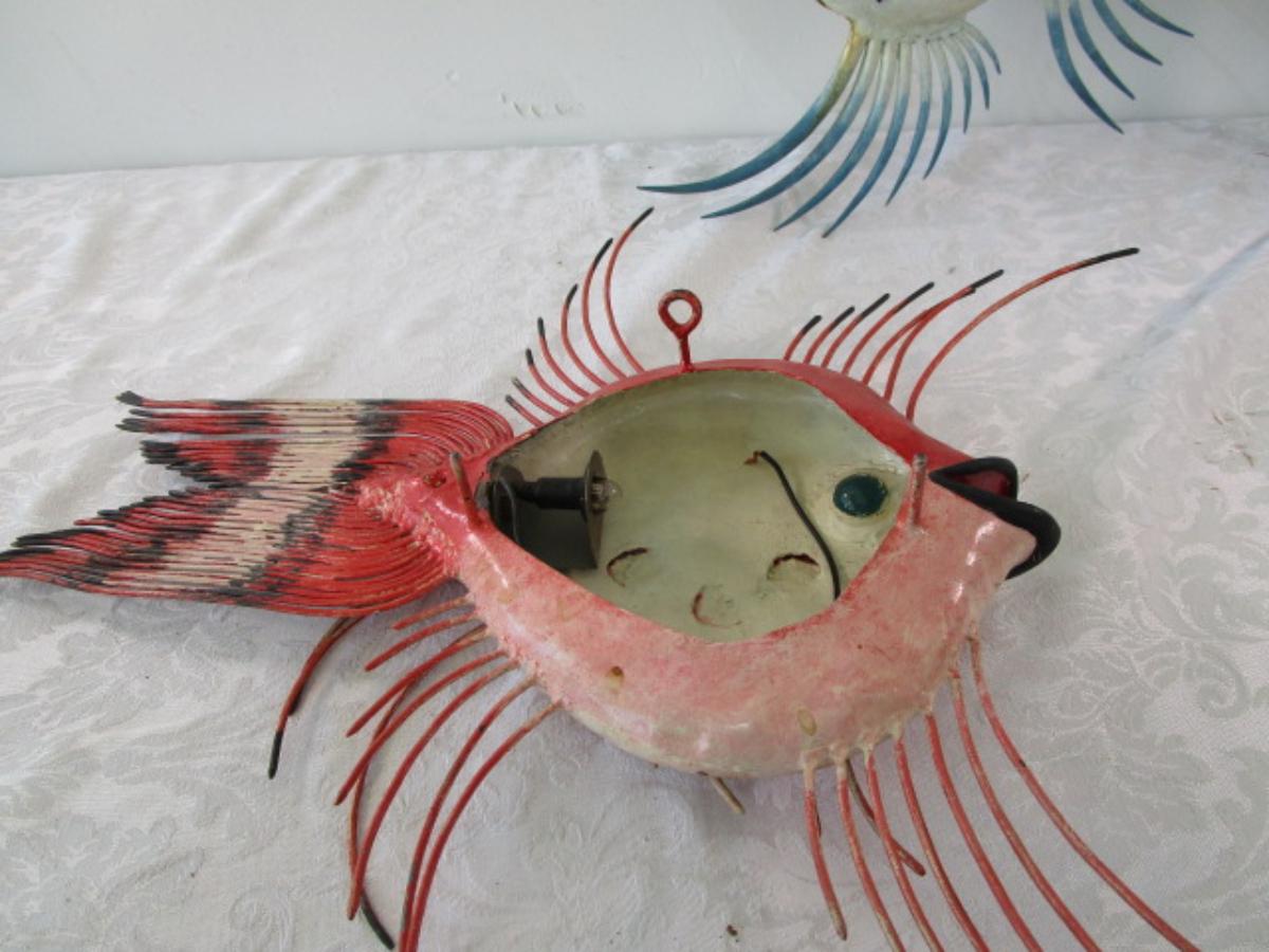 Both have lights that need repair, small pink is 18" long x 13" tall, large blue is 25-1/2" long x 17" tall