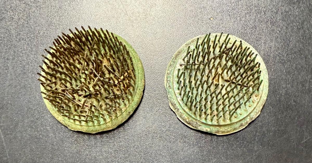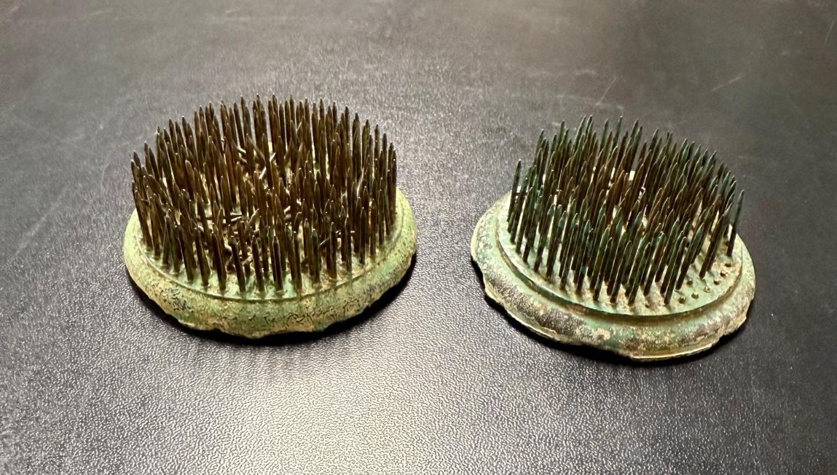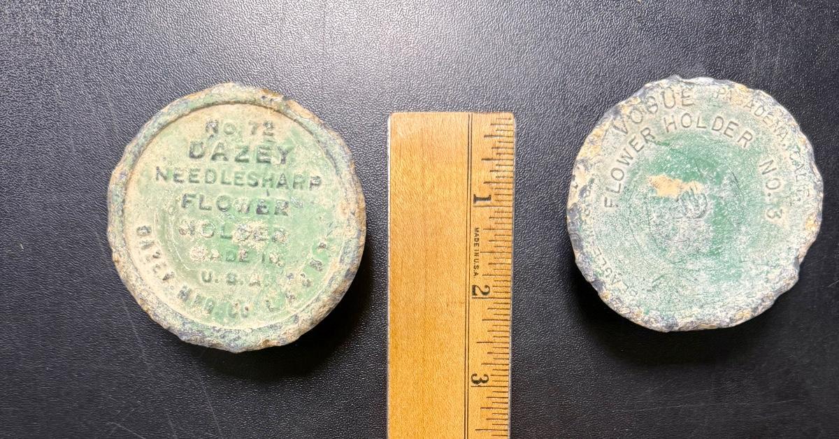 Includes a Dazey No. 72 and a Vogue Flower Holder No. 3. Each are approx. 2.5" across and are in good condition.