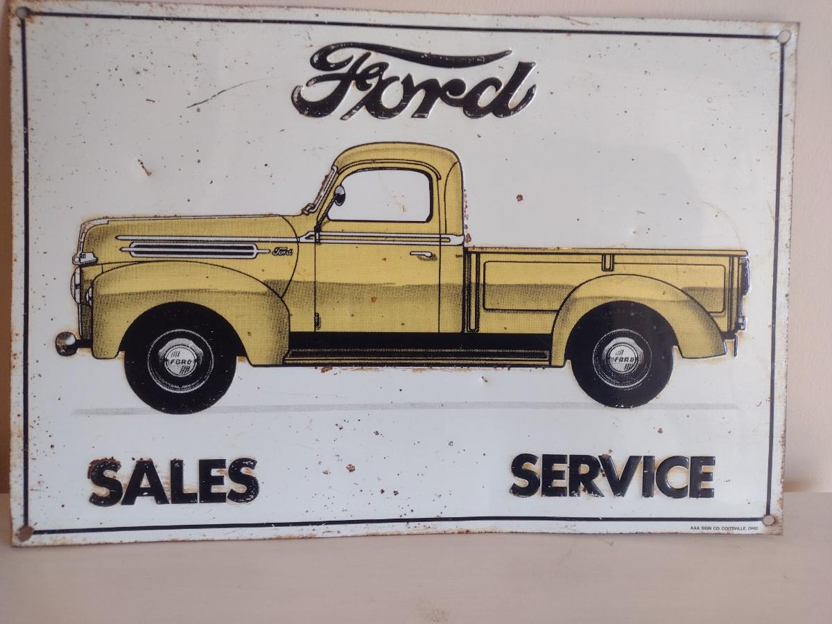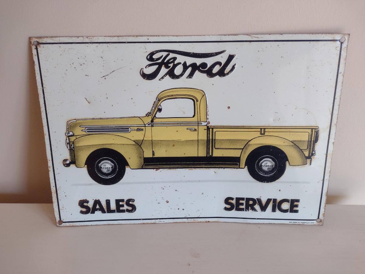 Vintage Metal Ford Sales and Service Stamped Garage Sign