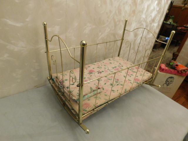Vintage Metal Frame Baby Doll Rocking Cradle 20"x14"x15" May have wear to finish