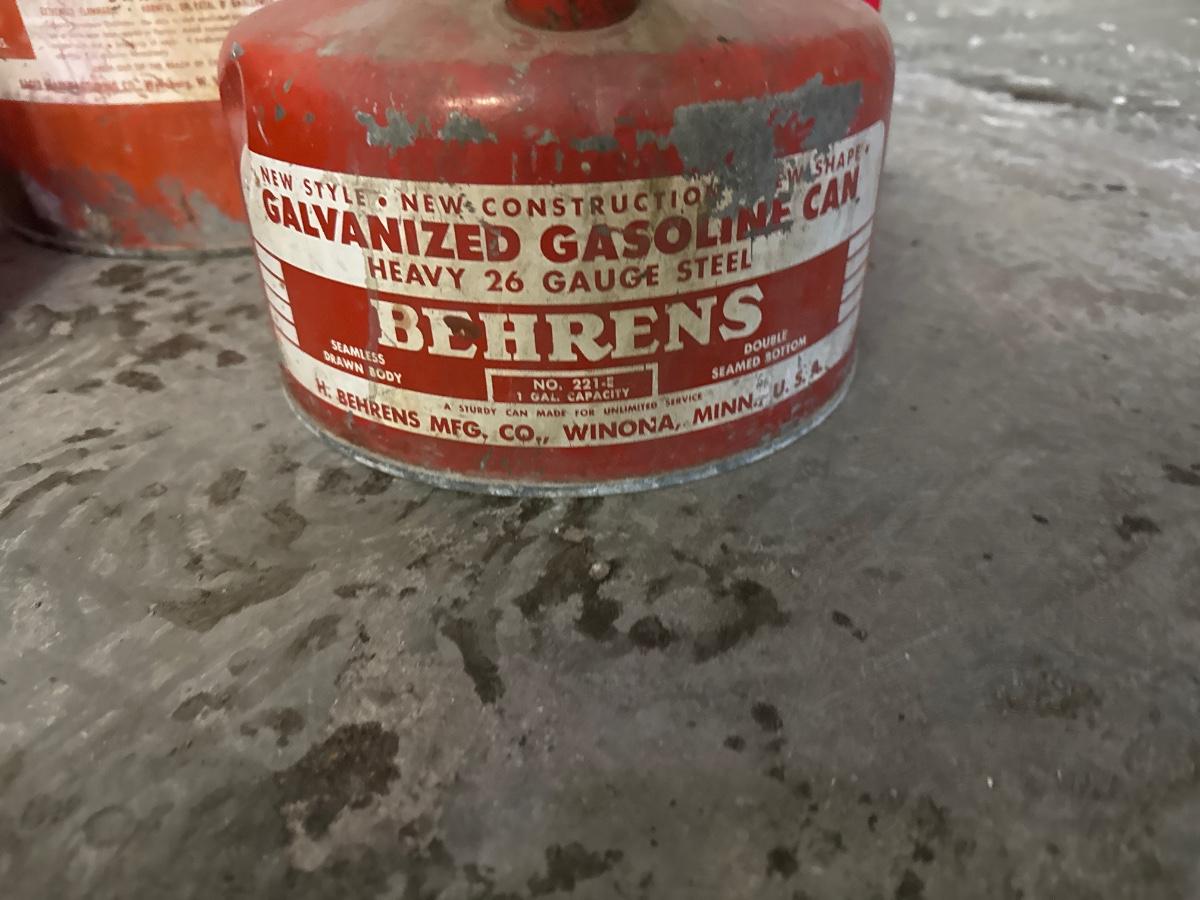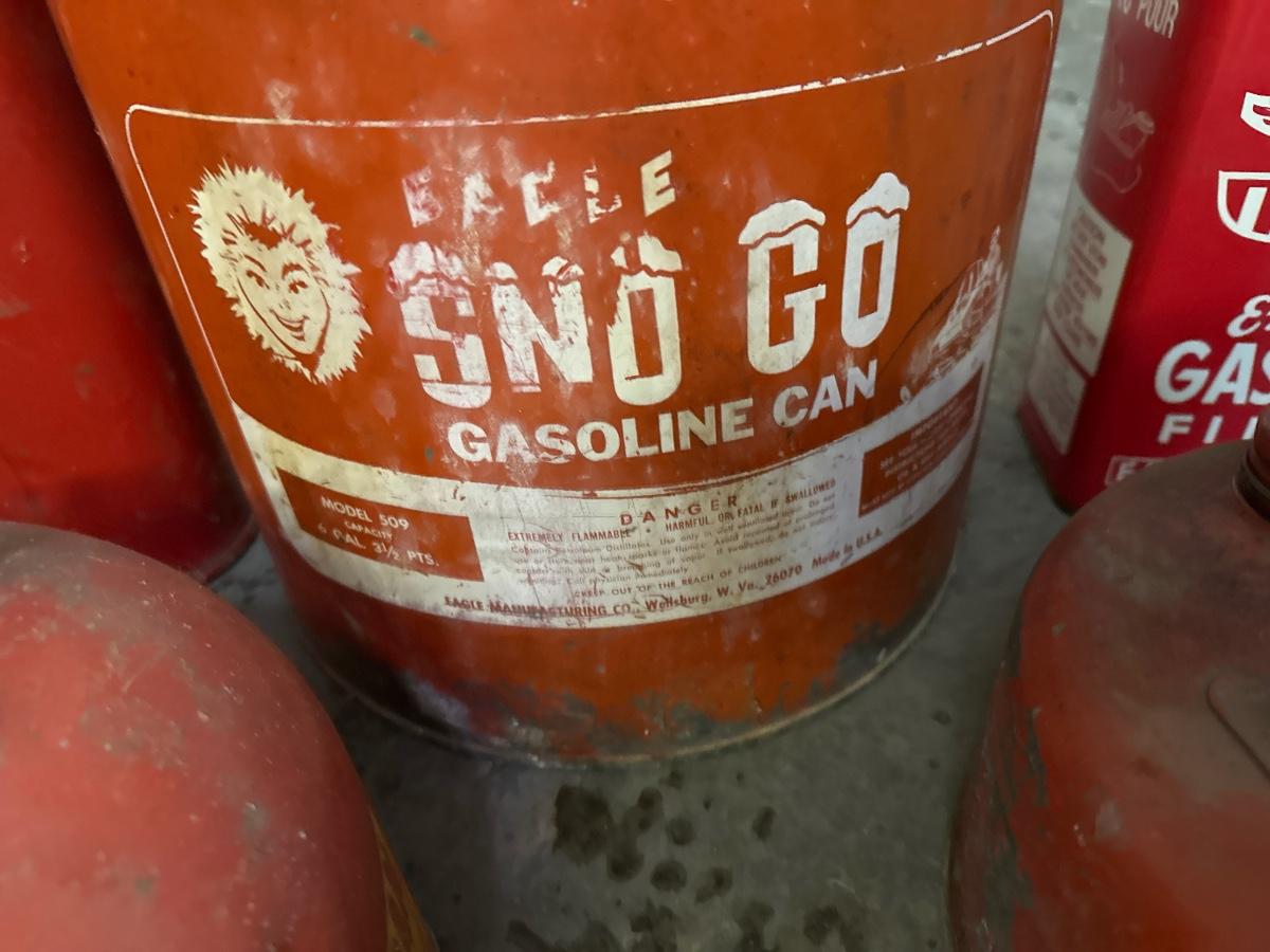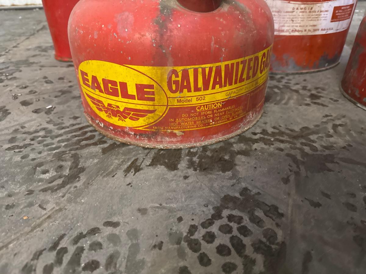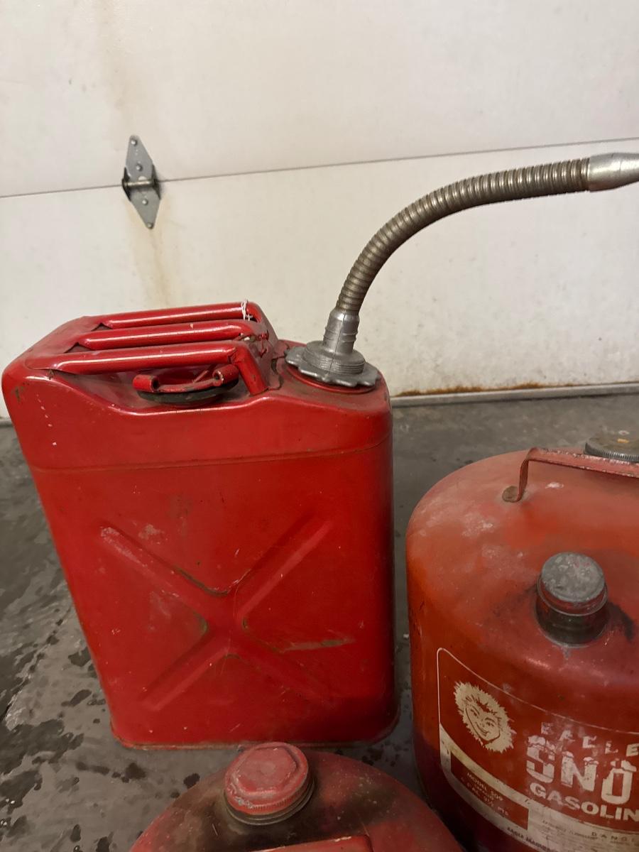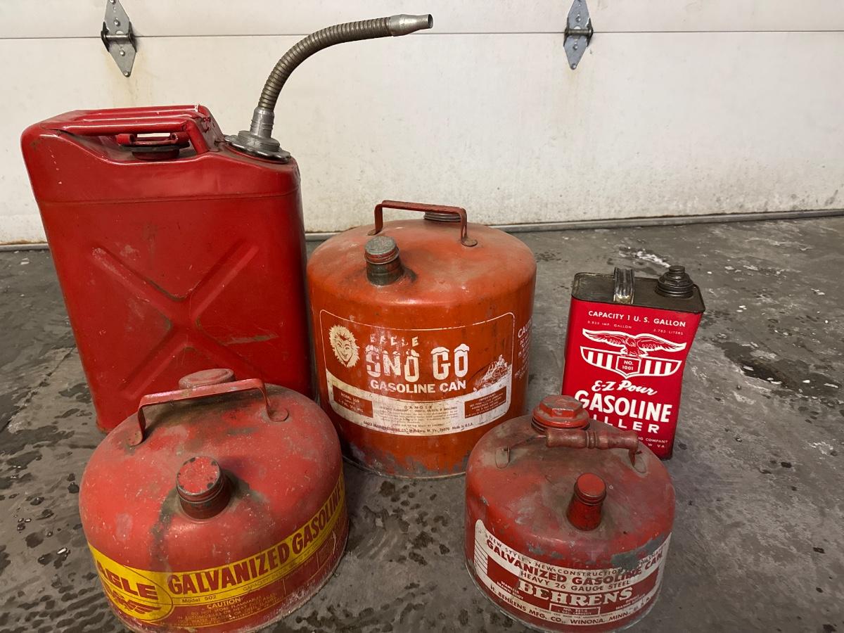 Includes five vintage metal gas containers
