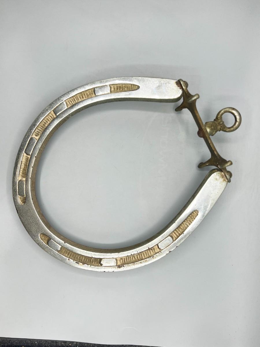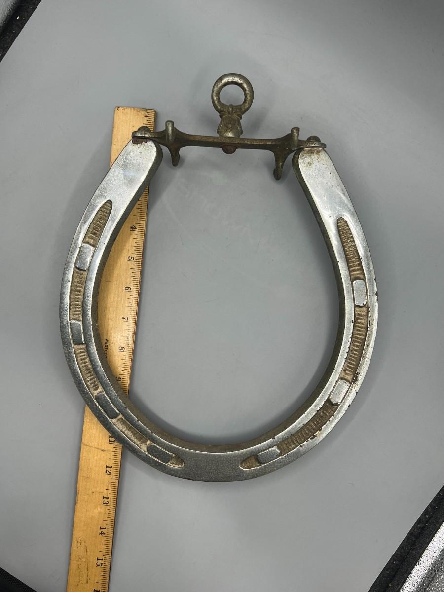 There is no significant damage to the horseshoe and is in overall good displayable or collectible condition. Check pictures for more details and for sizing.