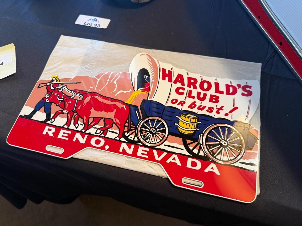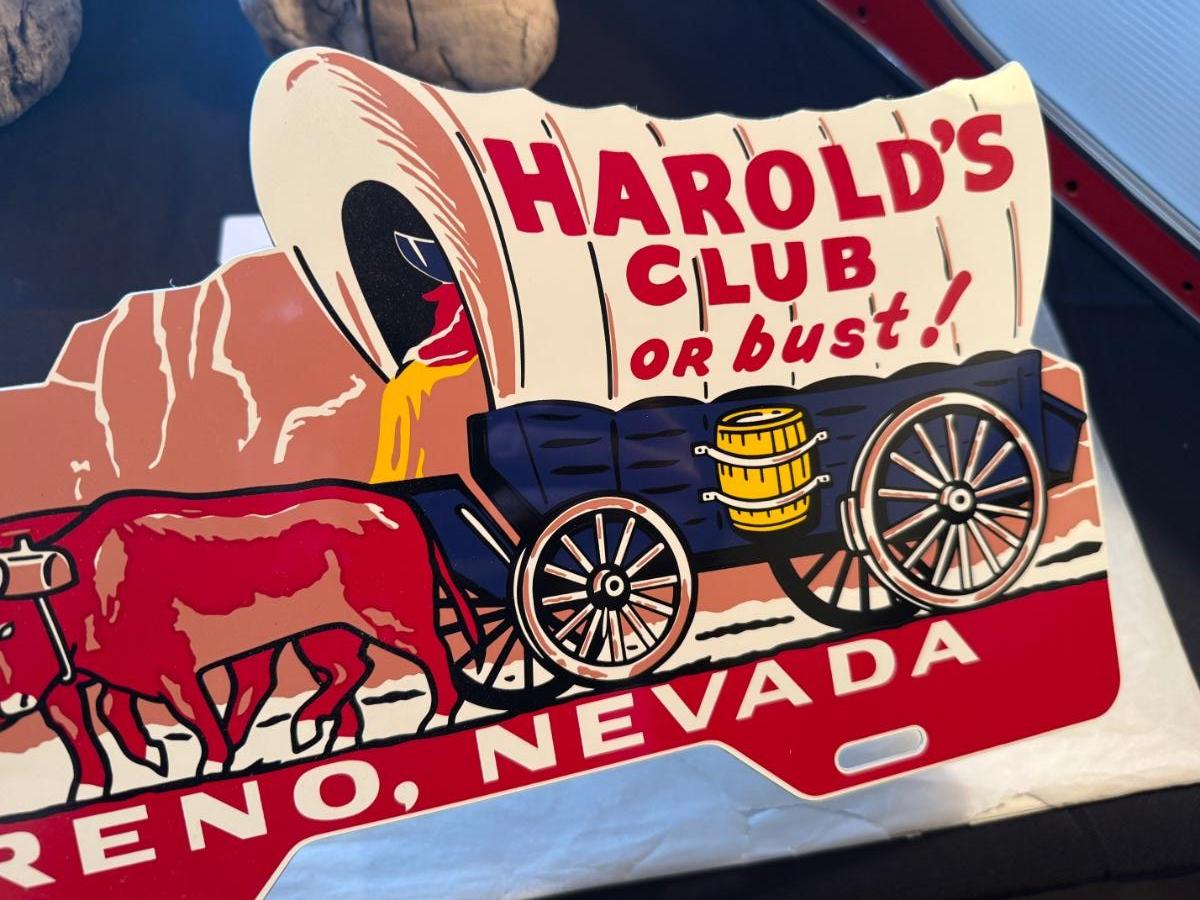 Vintage metal Harold’s Club or Bust Reno NV sign/license plate topper