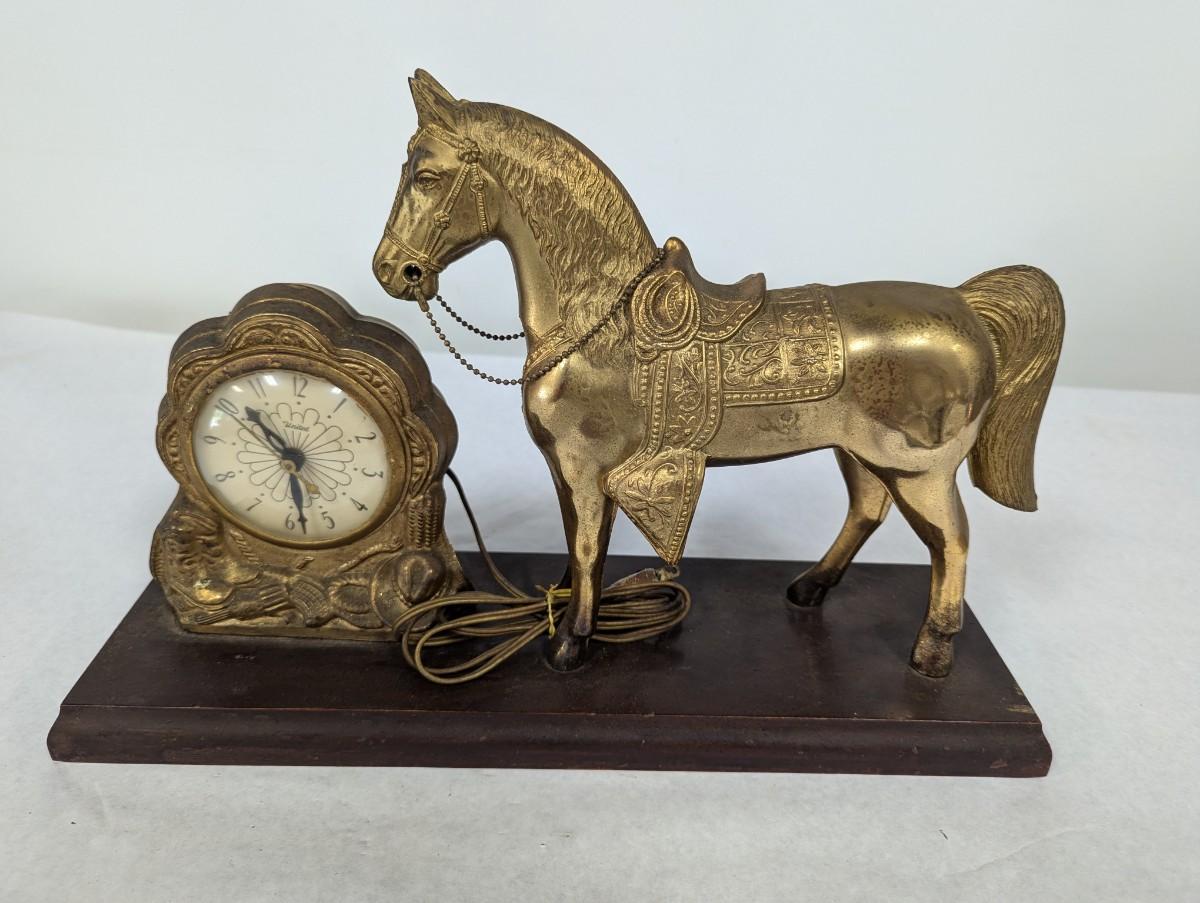Vintage Metal Horse Clock United