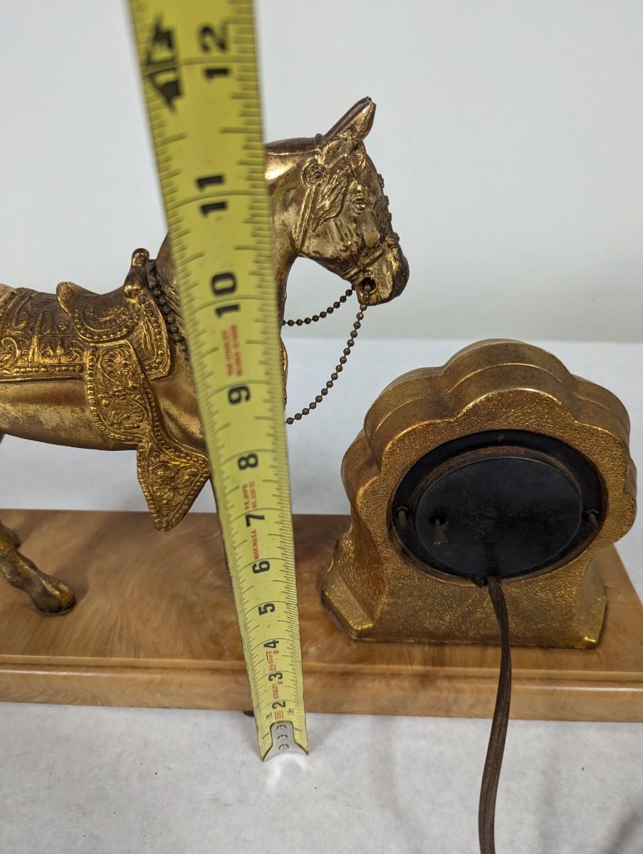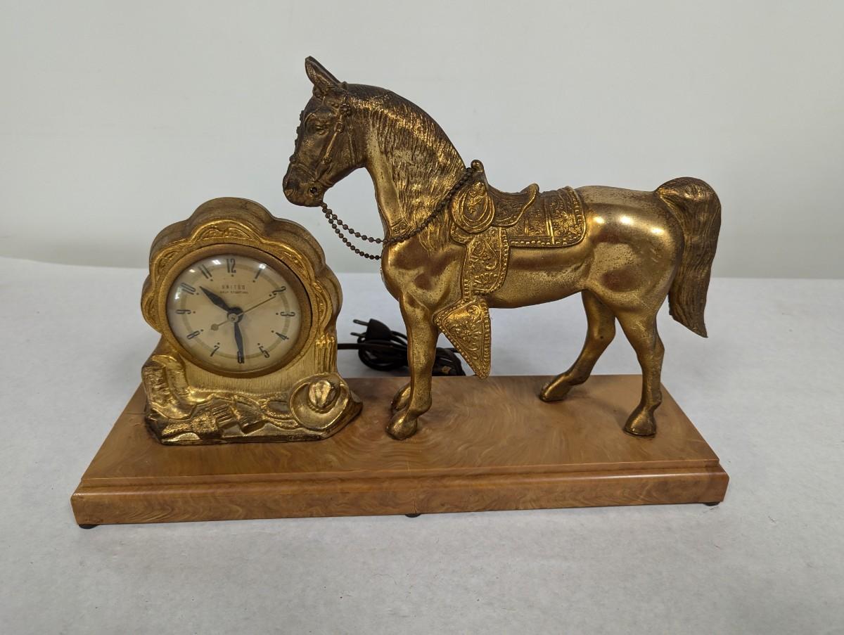 Vintage Metal Horse With Plastic Stand United Self Starting Clock