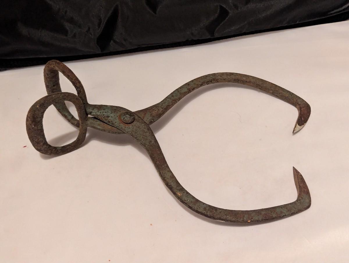 Vintage Metal Ice Block Tongs Hinged (B)
