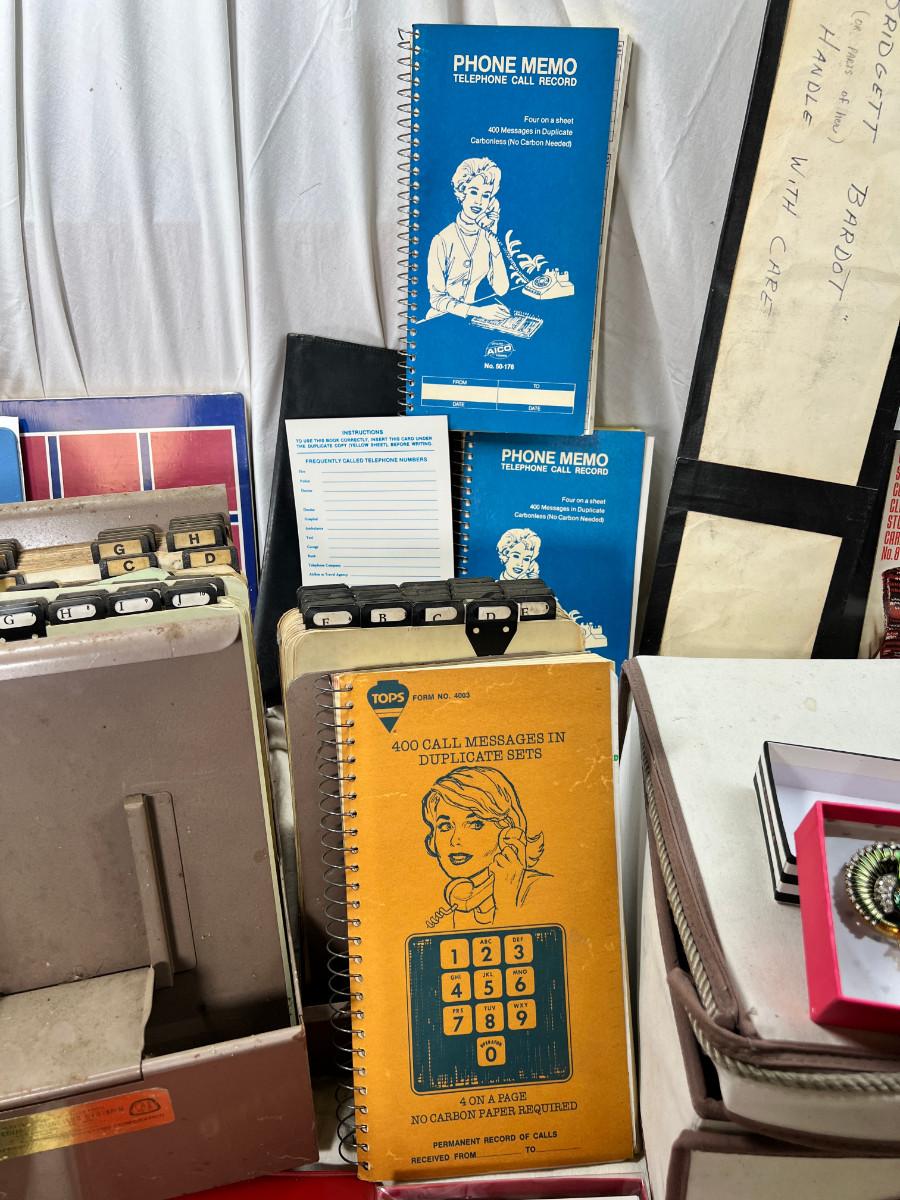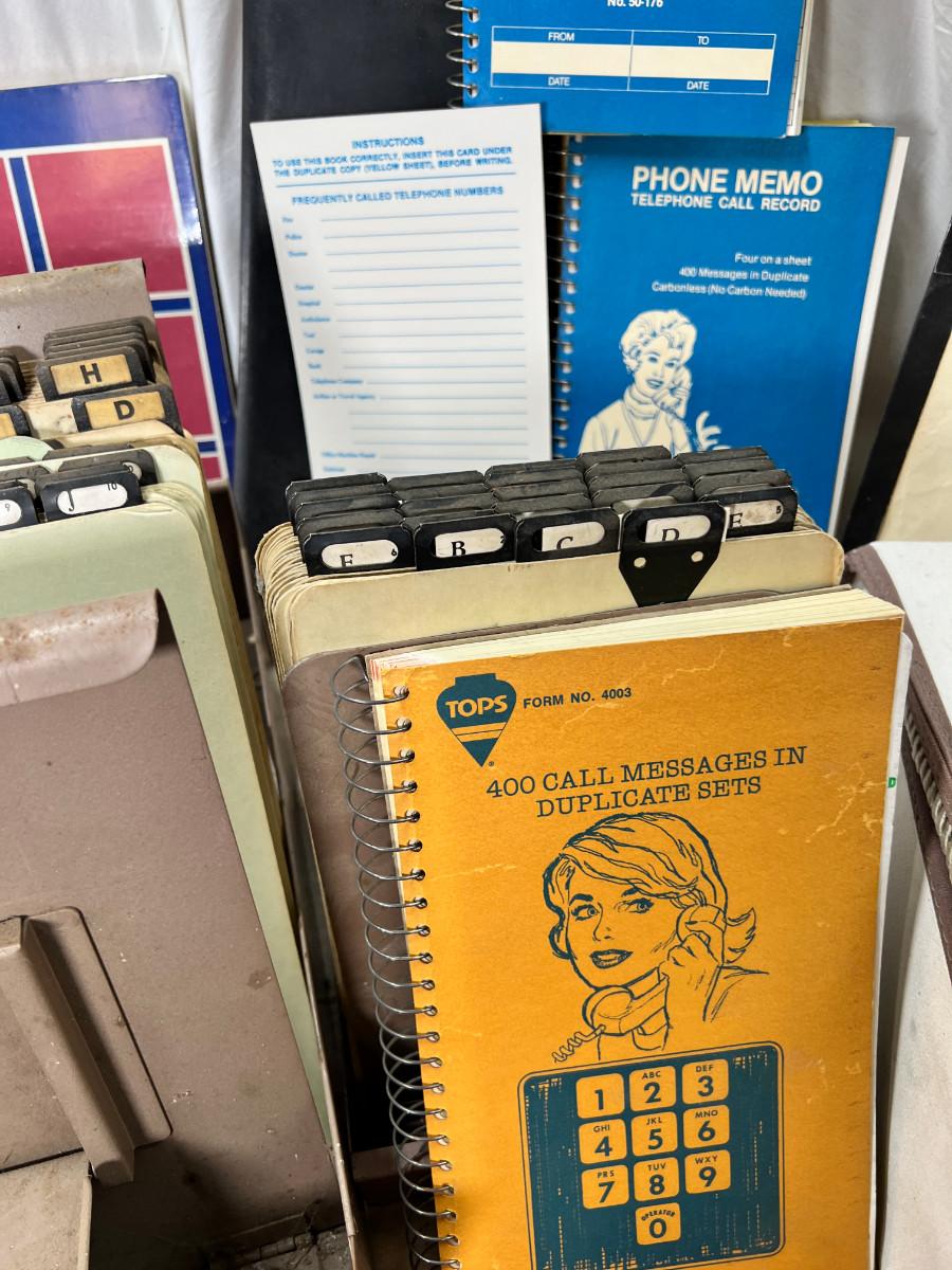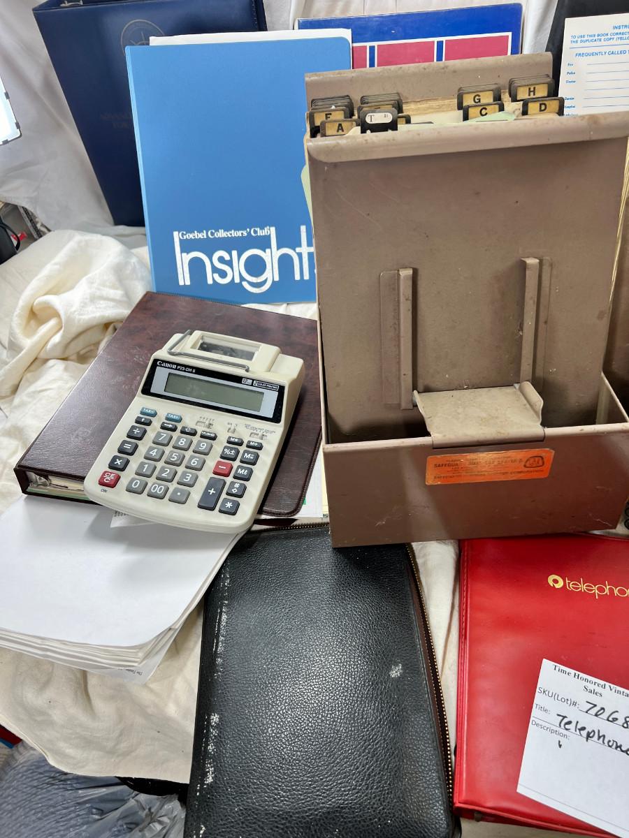 1950s-80s Binders, clear rulers, Cards, cloth box, telephone items.
