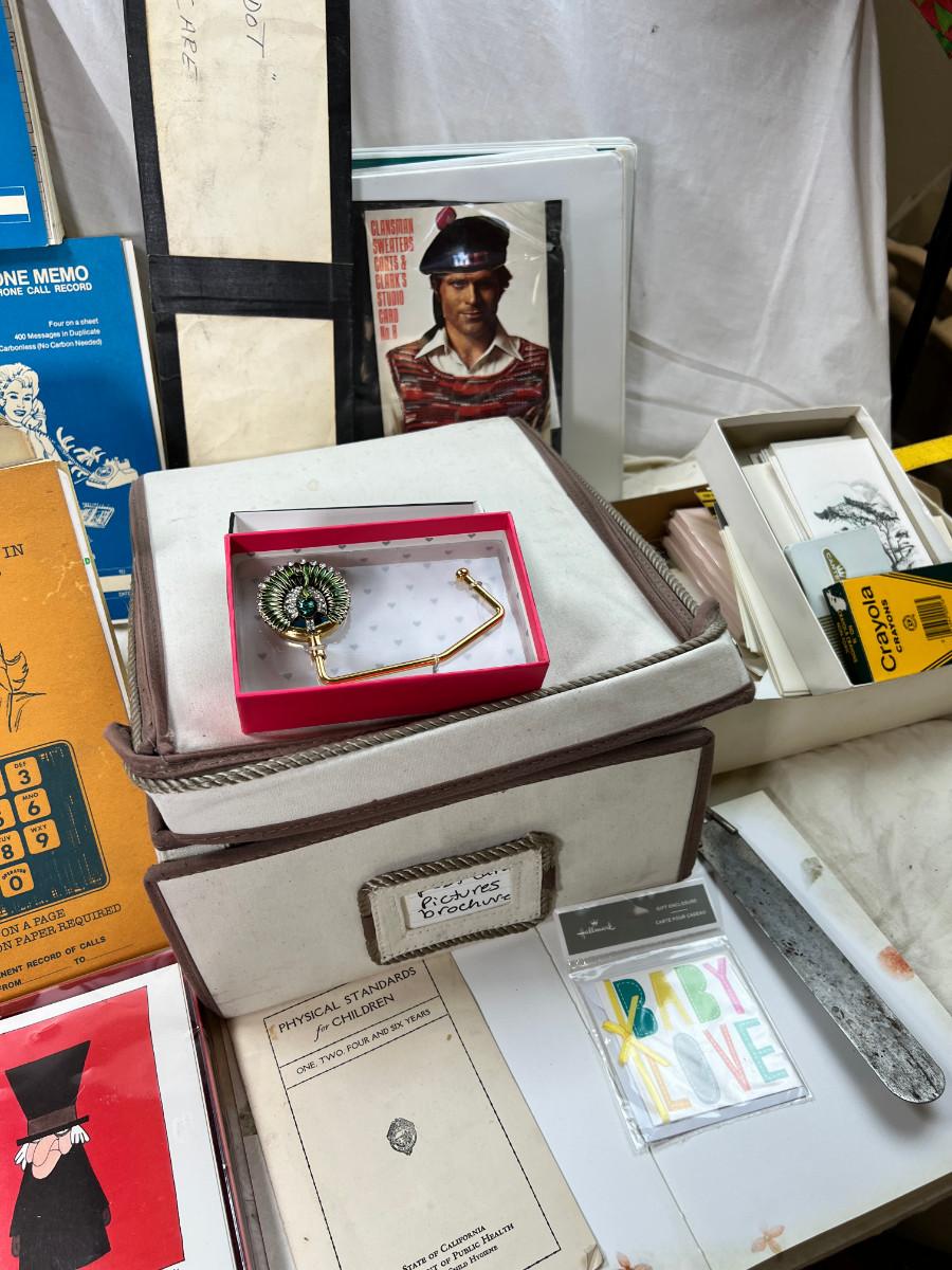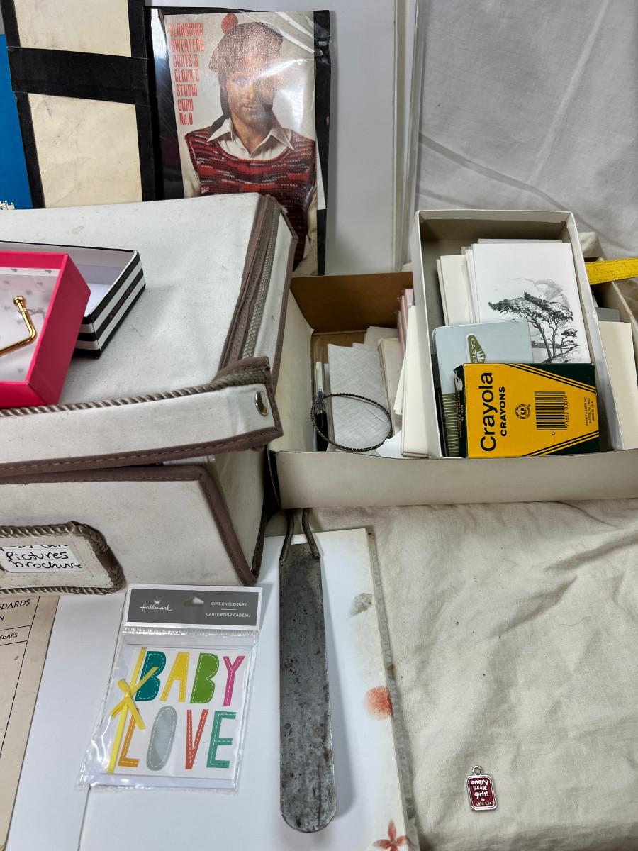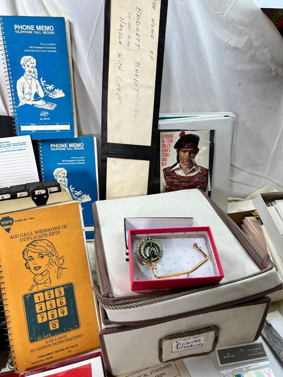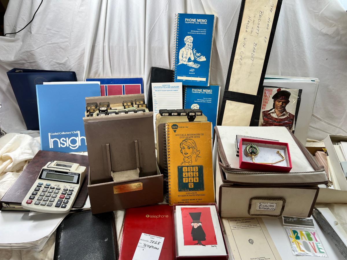 1950s-80s Binders, clear rulers, Cards, cloth box, telephone items.