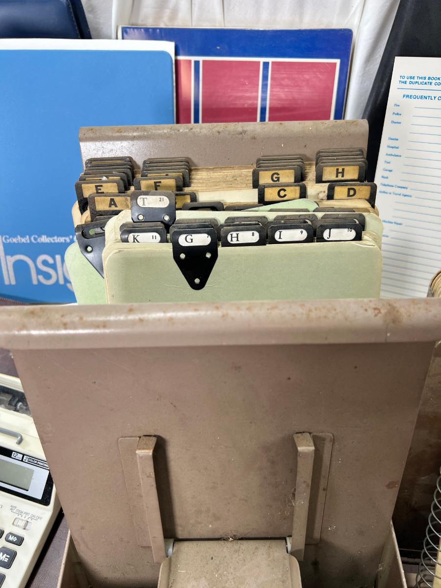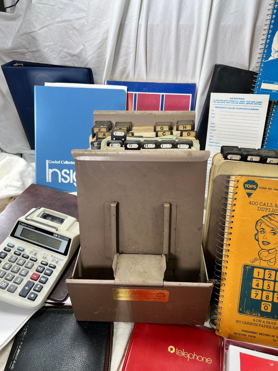 Vintage metal indexs and cards Telephone books