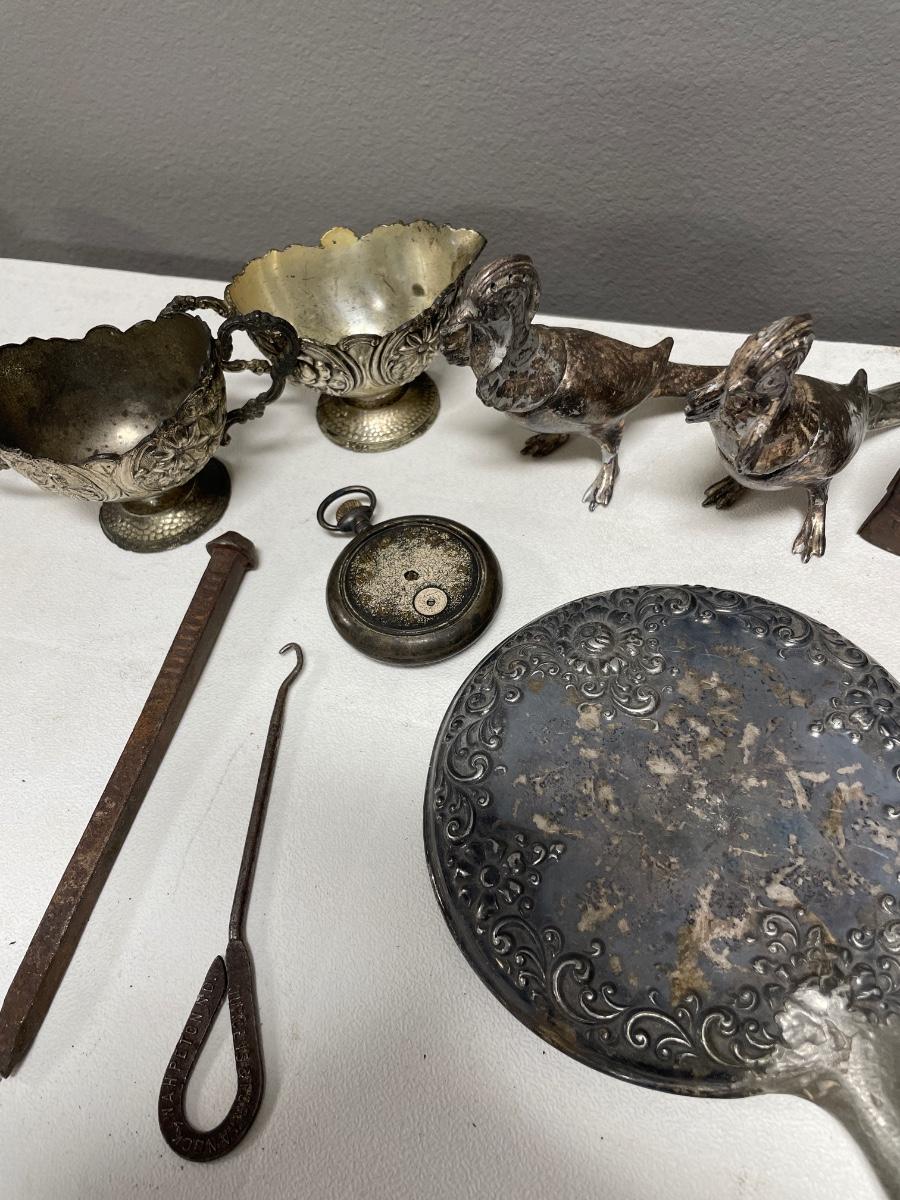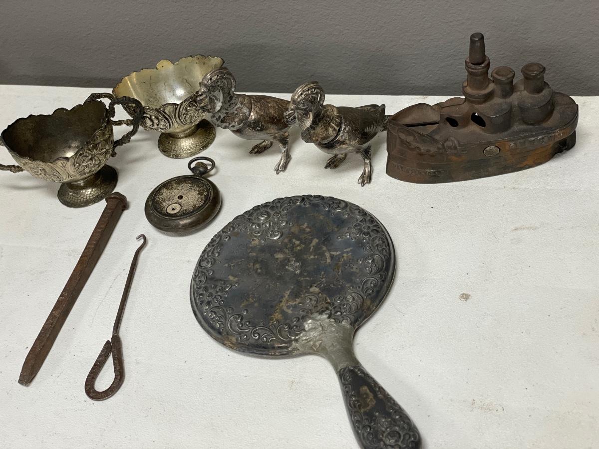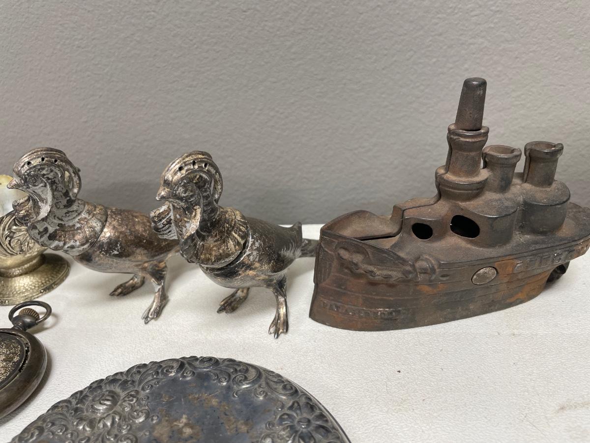 Birds heads come off, hand mirror, boat, pocket watch and sugar and cream items