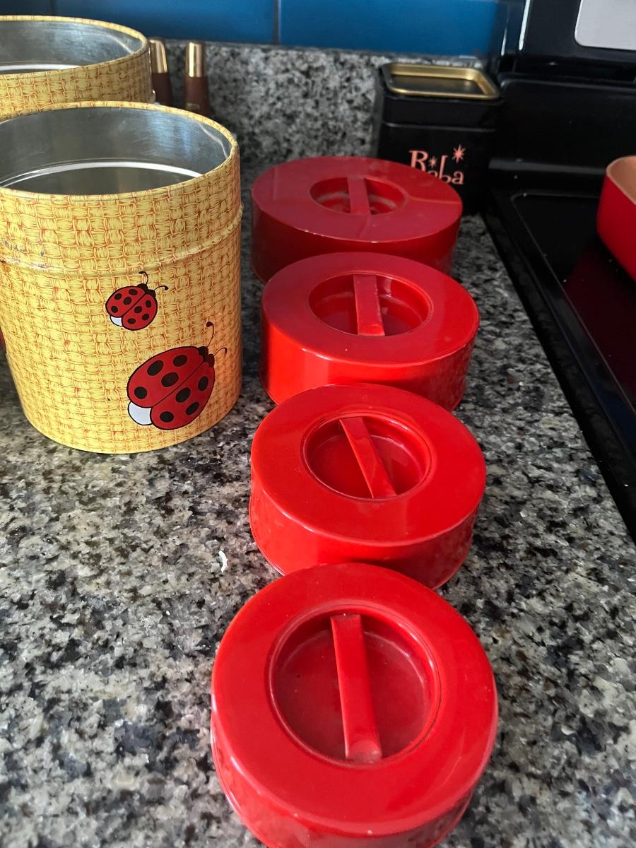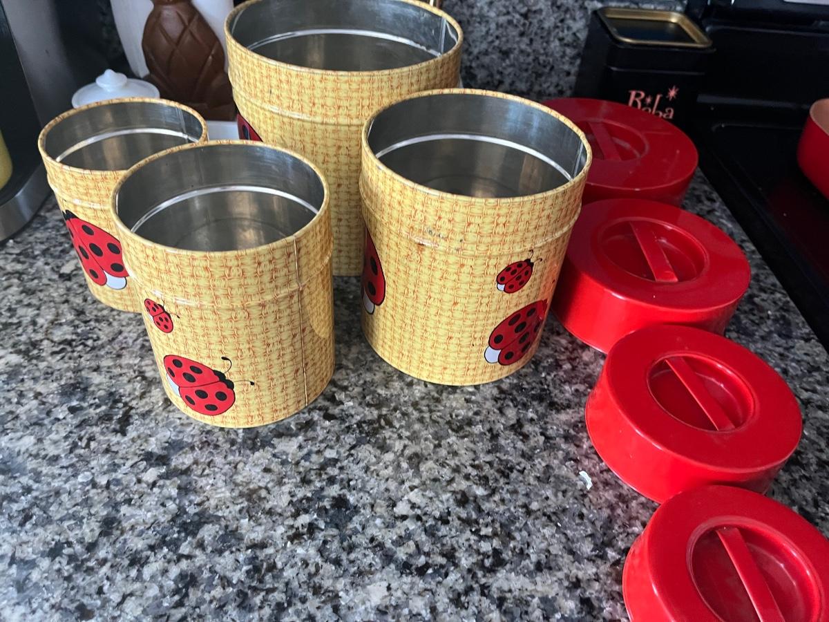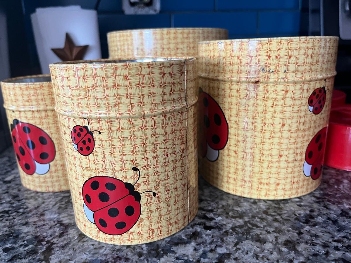 Vintage metal ladybug canisters