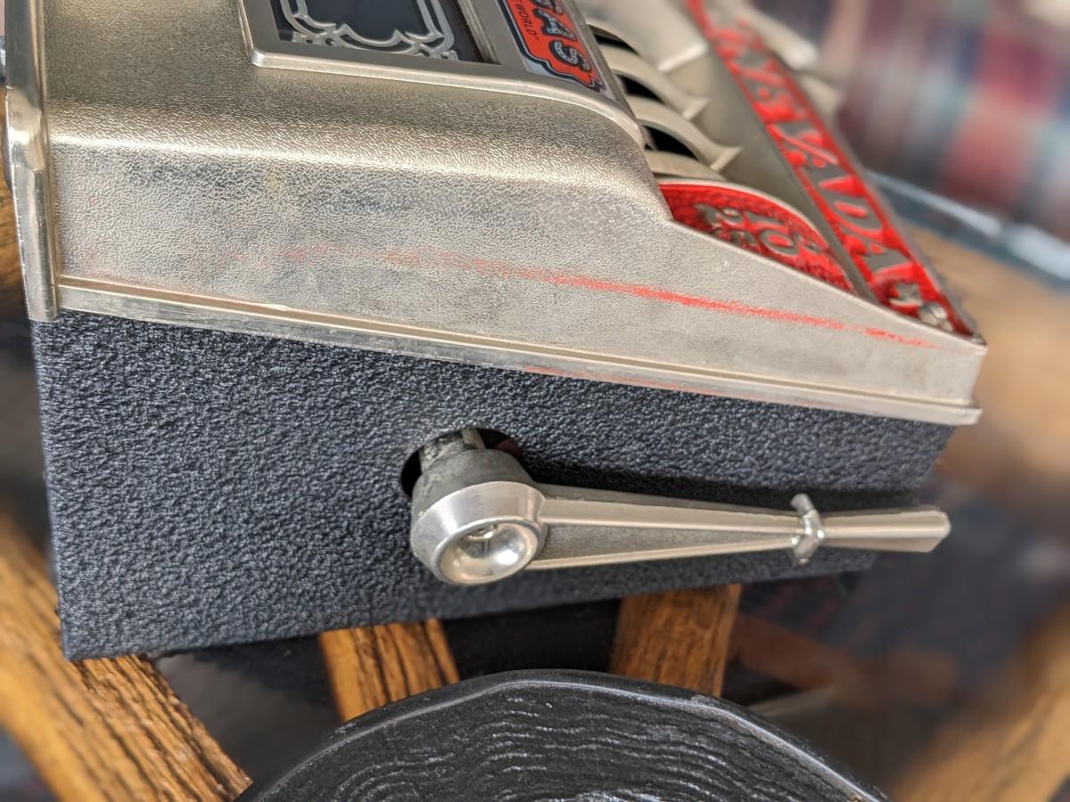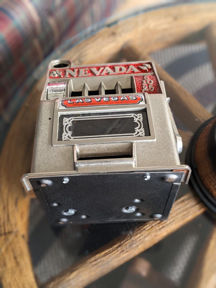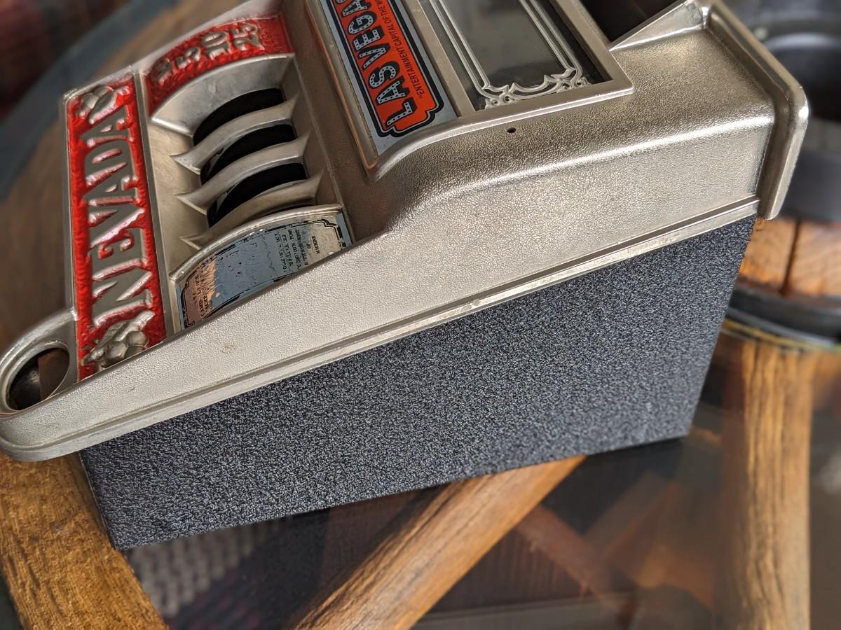 Vintage Metal Las Vegas Nevada Mini Slot Machine Toy Gambling Bank, Works!