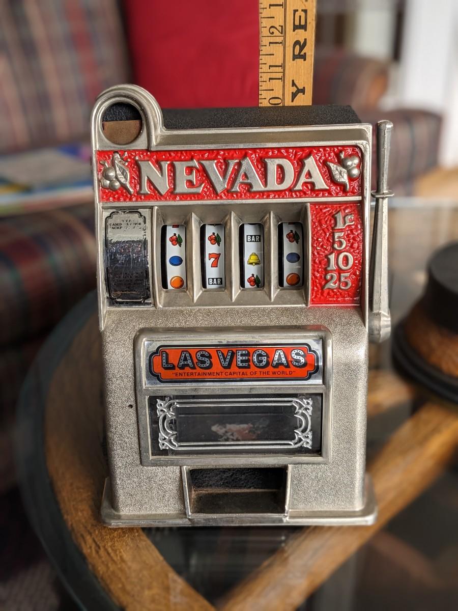 Vintage Metal Las Vegas Nevada Mini Slot Machine Toy Gambling Bank 11" Working