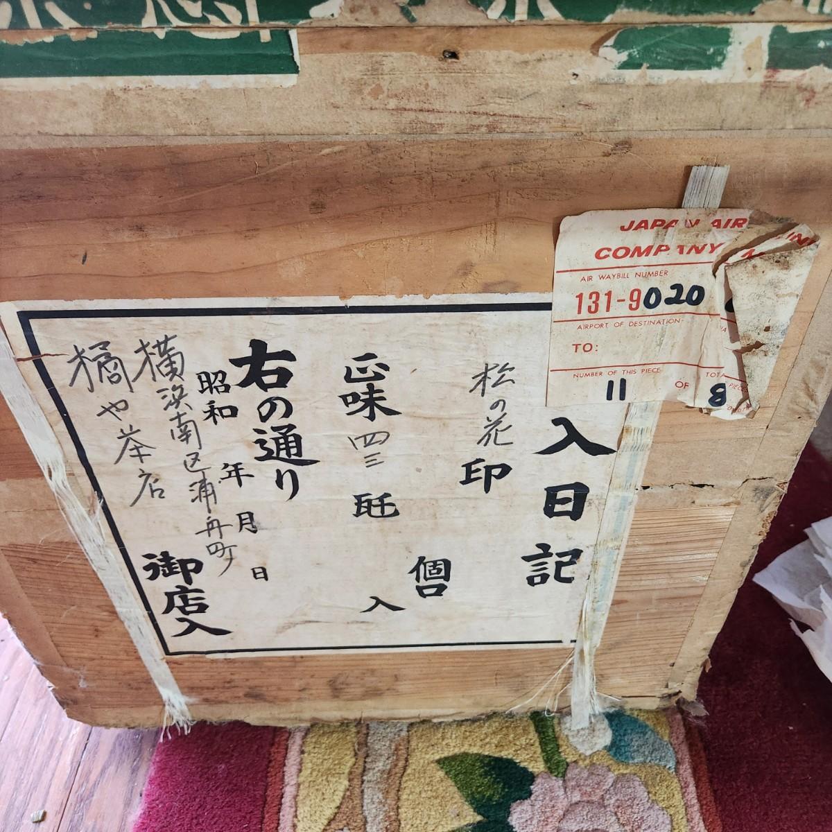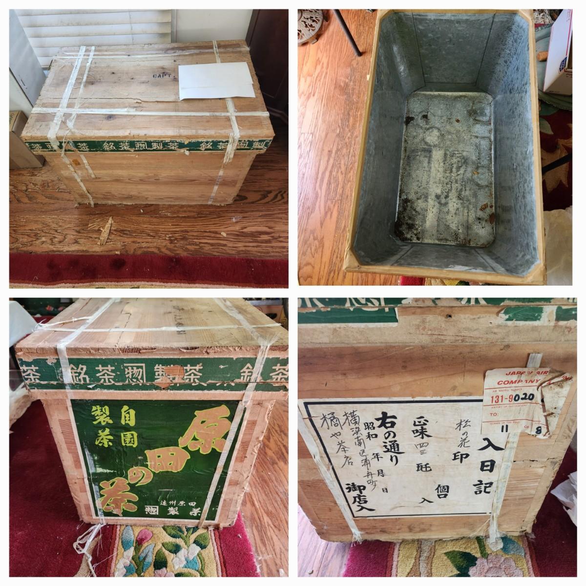 Vintage Metal Lined Japanese Tea Transport Shipping Crate Trunk