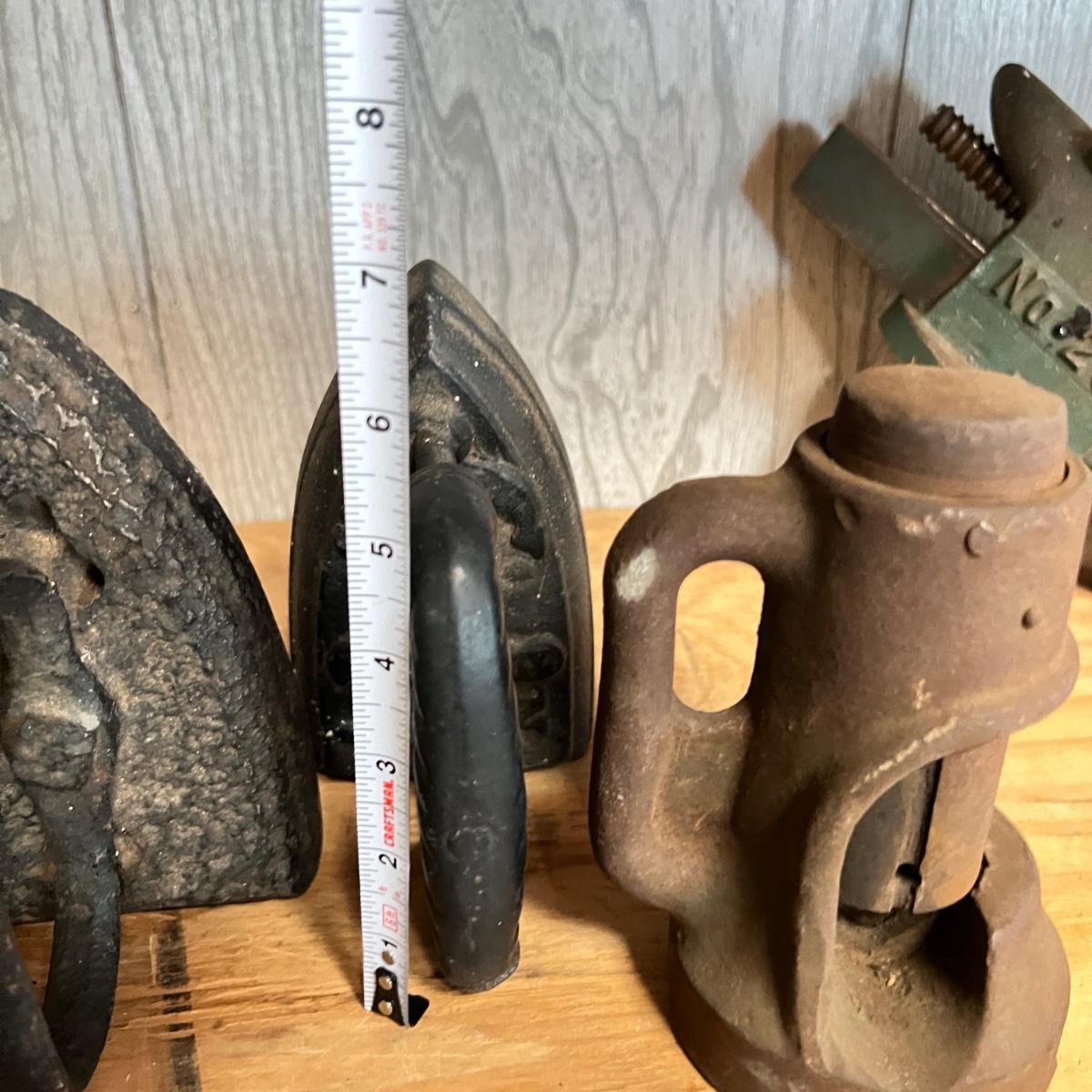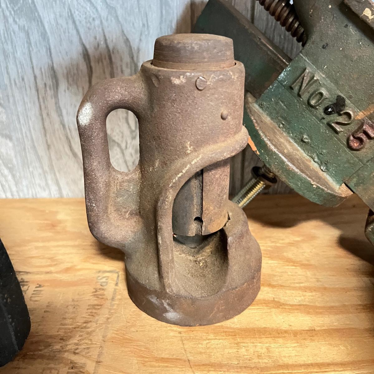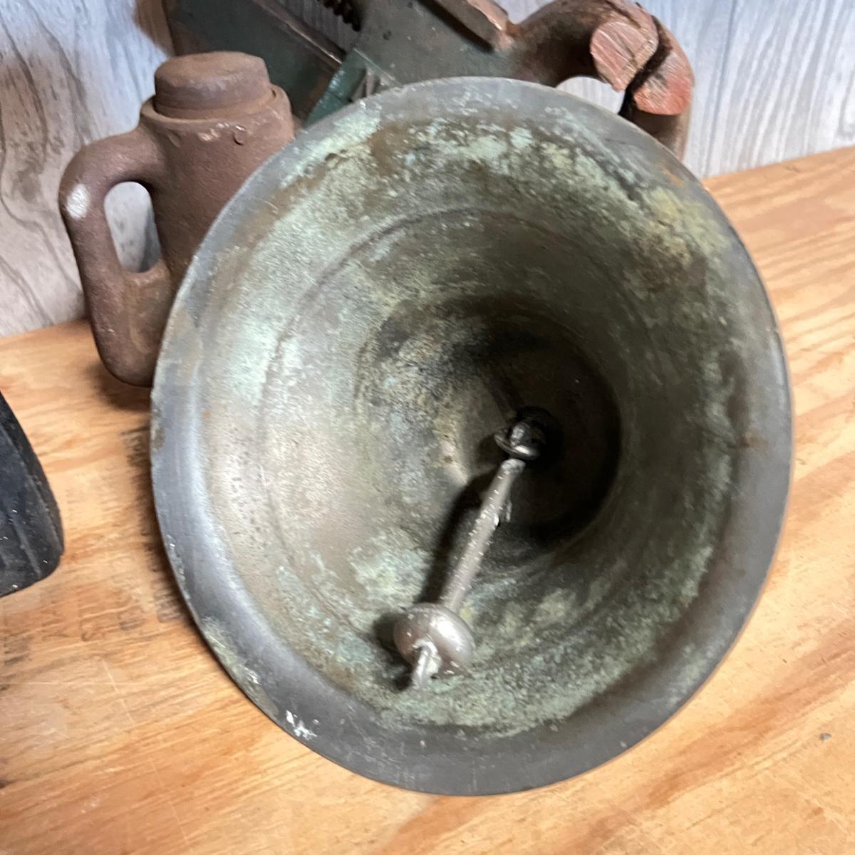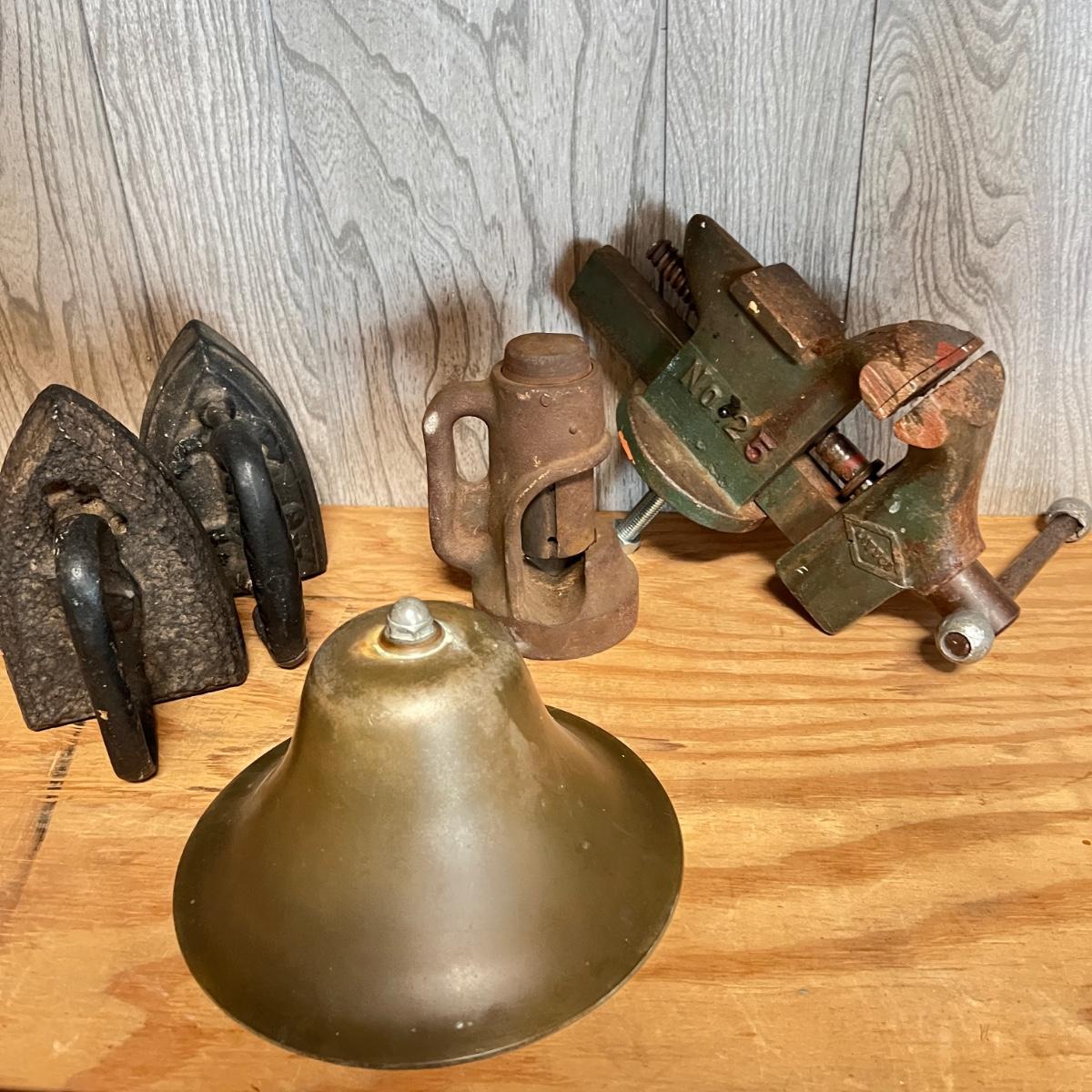 Vintage Metal Lot - Cable Cutter, Littco Vise, Cast Iron, Brass Bell