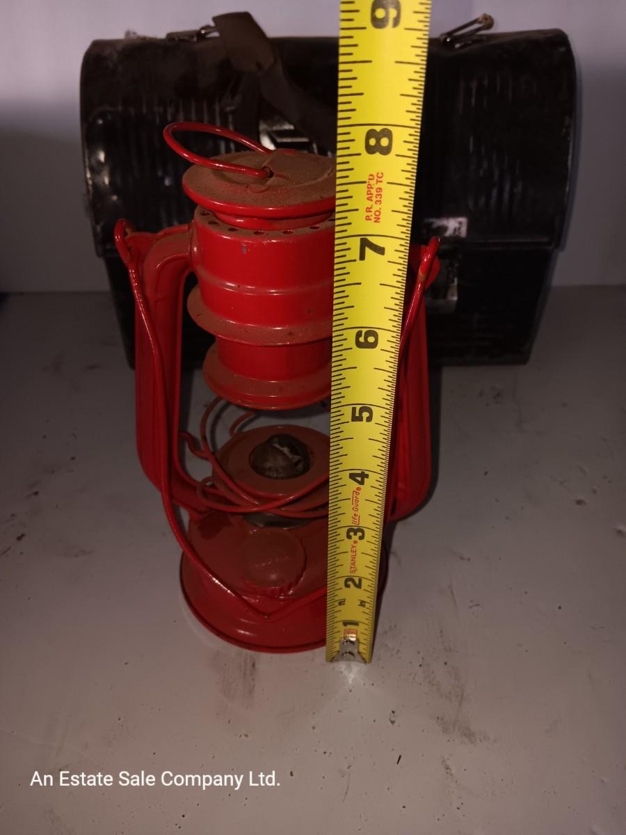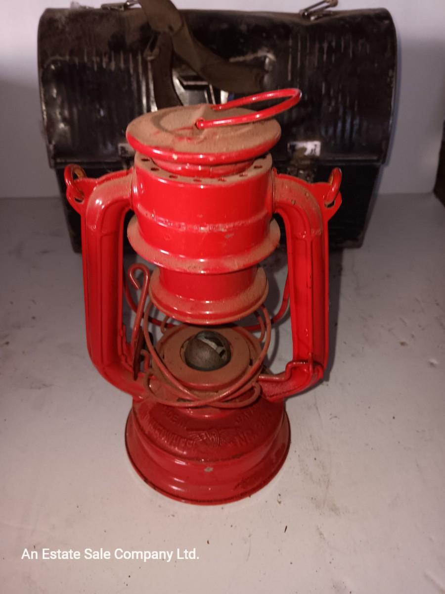 Vintage metal lunchbox - copper candle holder and a oil lantern without the globe