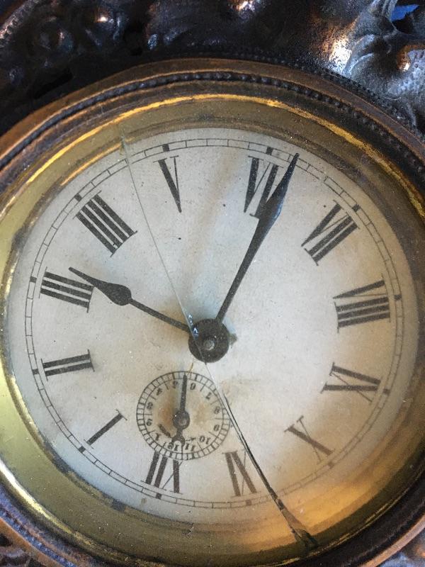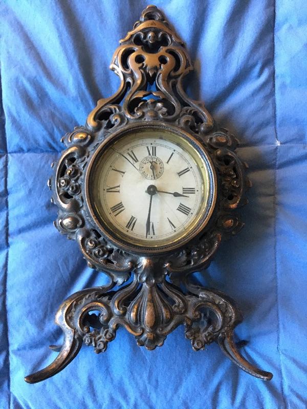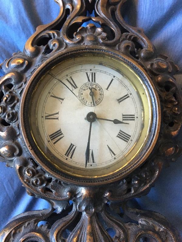 Vintage Metal Mantle Clock with Bronze Finish 13”