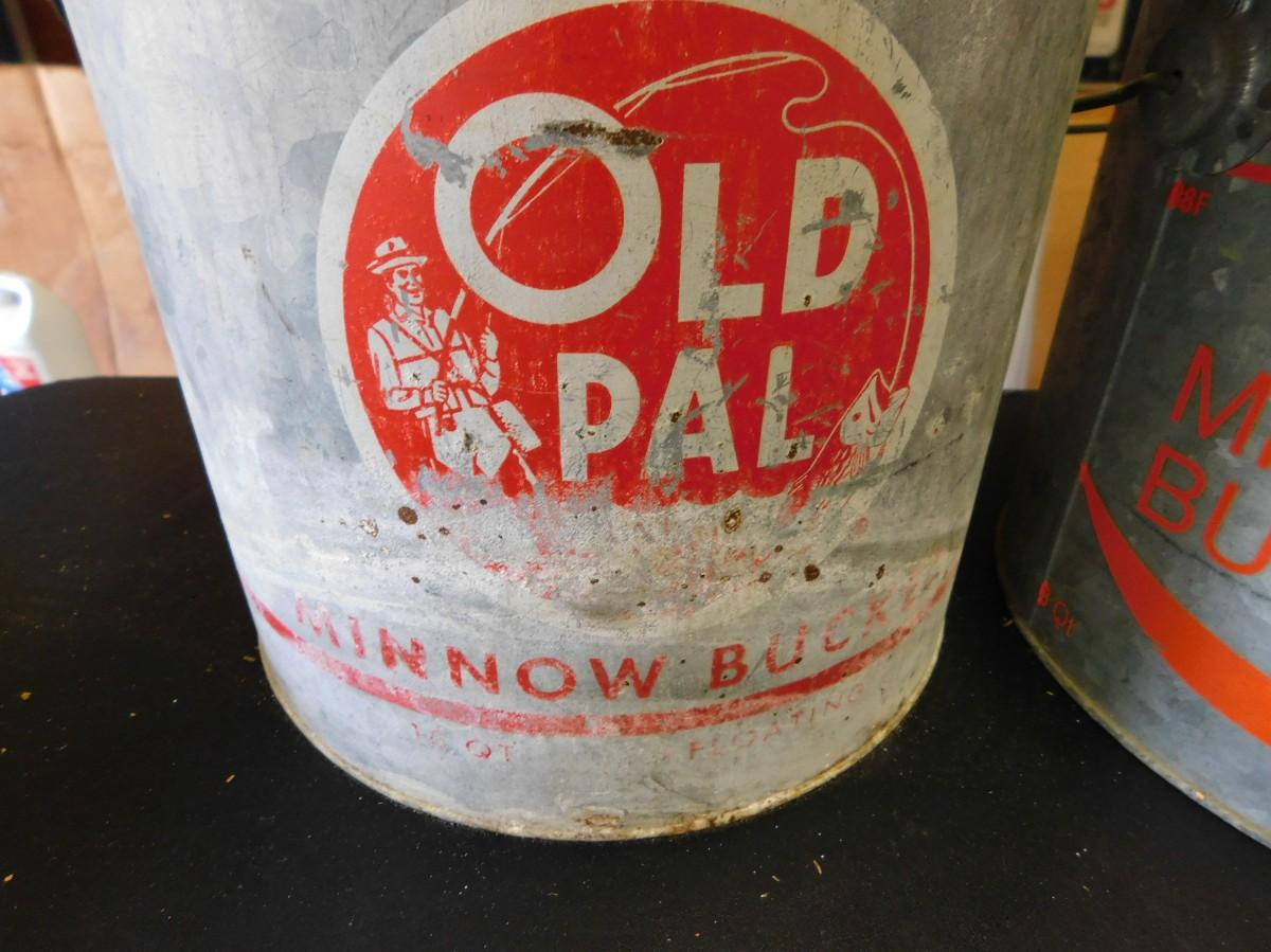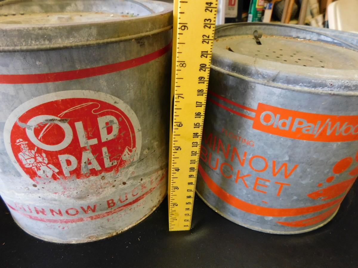Vintage Metal Minnow Buckets Old Pal with lines inside