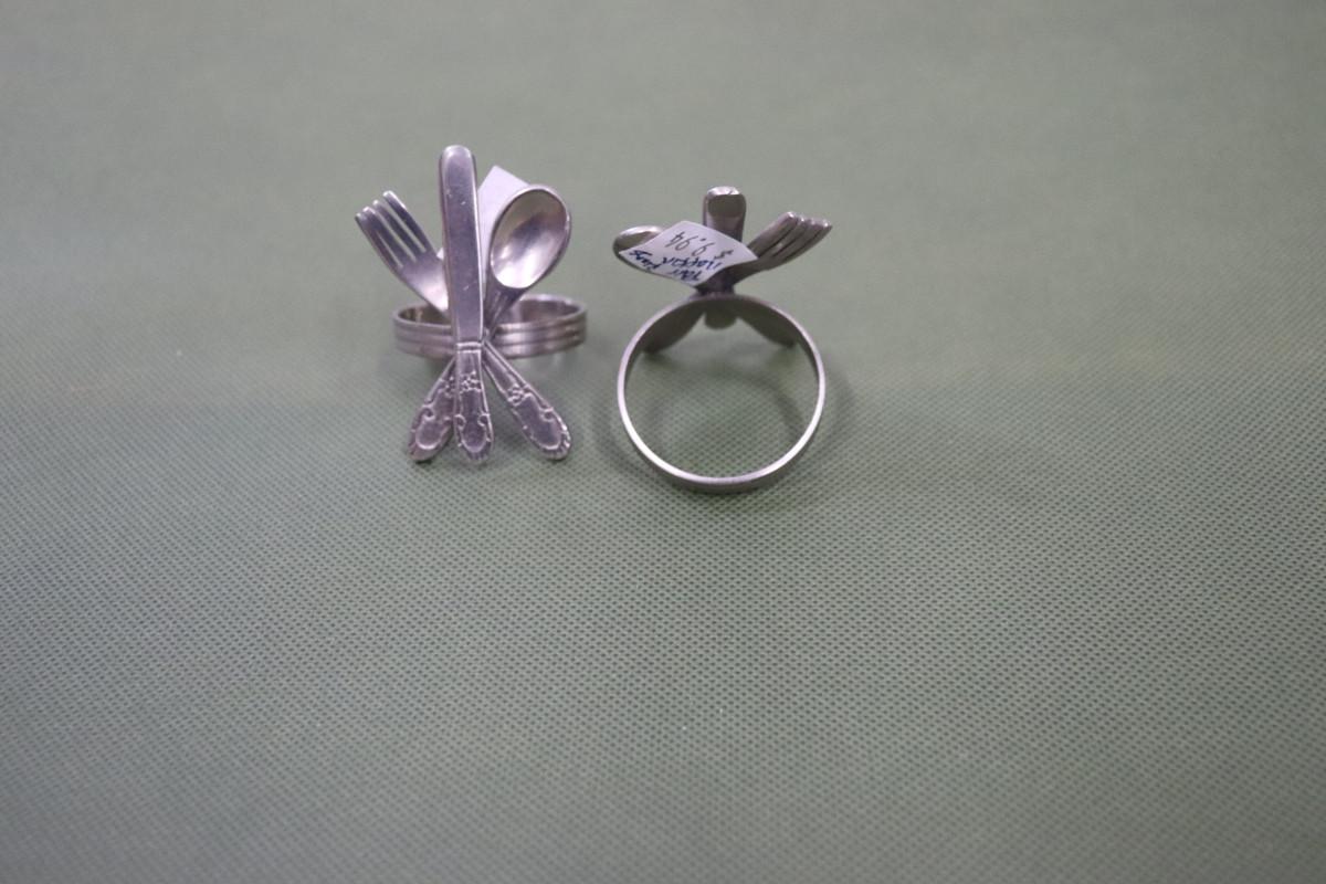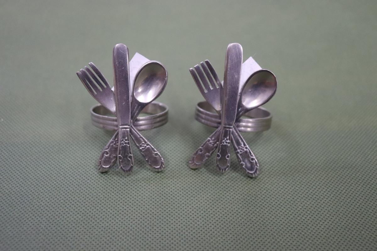 Vintage Metal Napkin Ring Holders Knife Fork Spoon Utensils (Lot of 2)