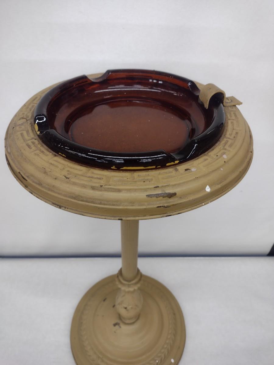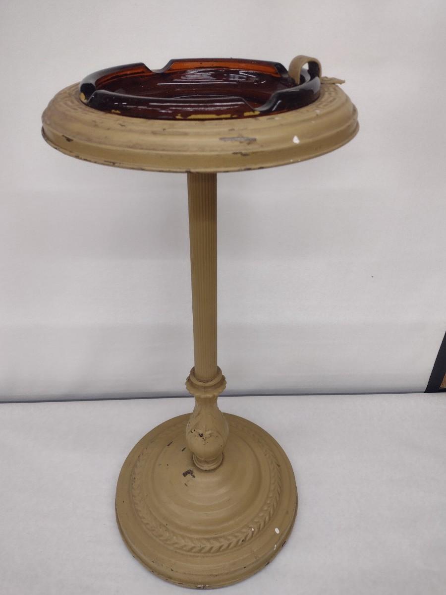 Vintage Metal Pedestal Ashtray Stand with Amber Glass Insert Choice A