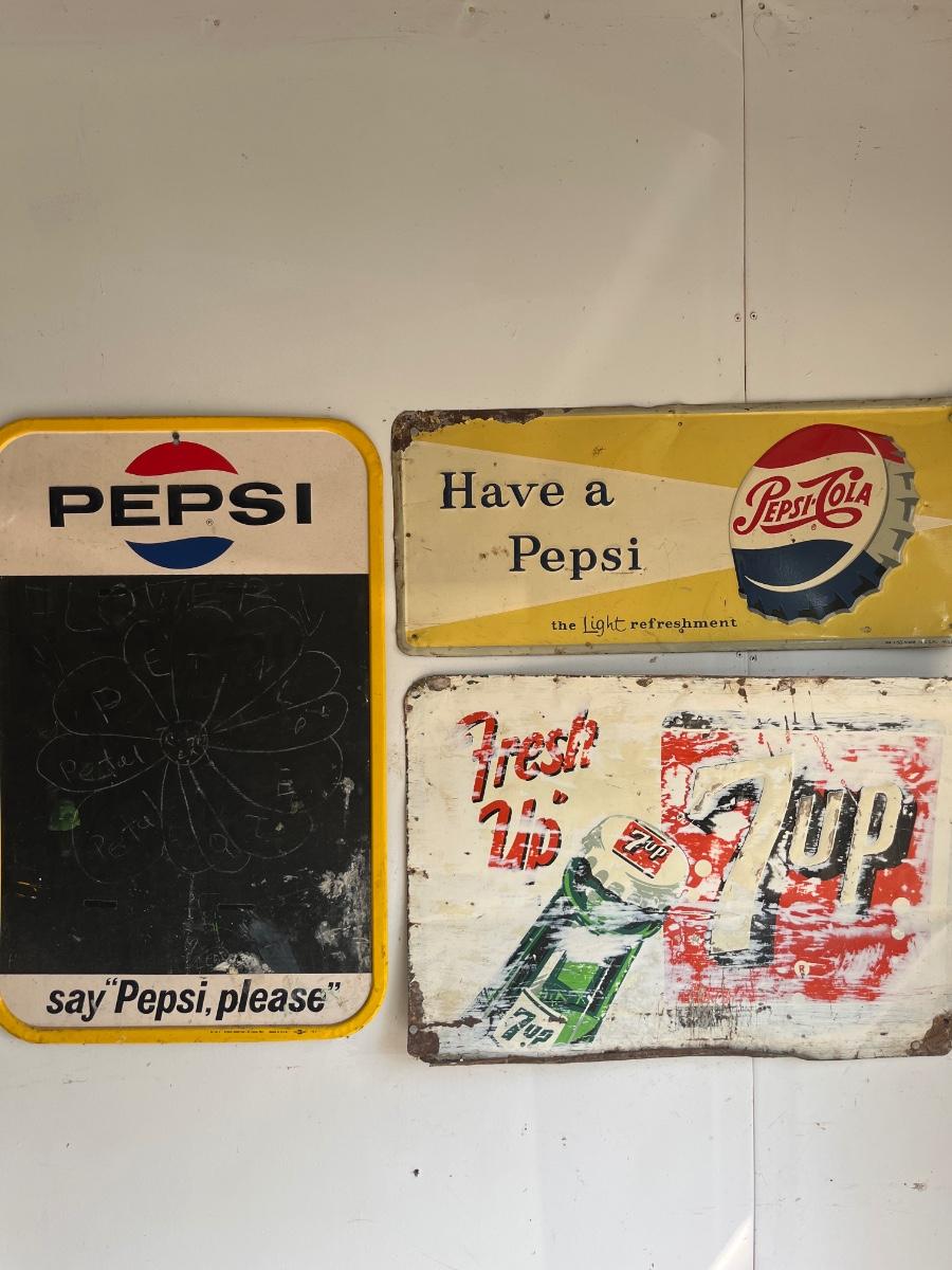 Chalkboard Pepsi 19.5x30. Pepsi 28x12. 7-up 27x18. See pics.