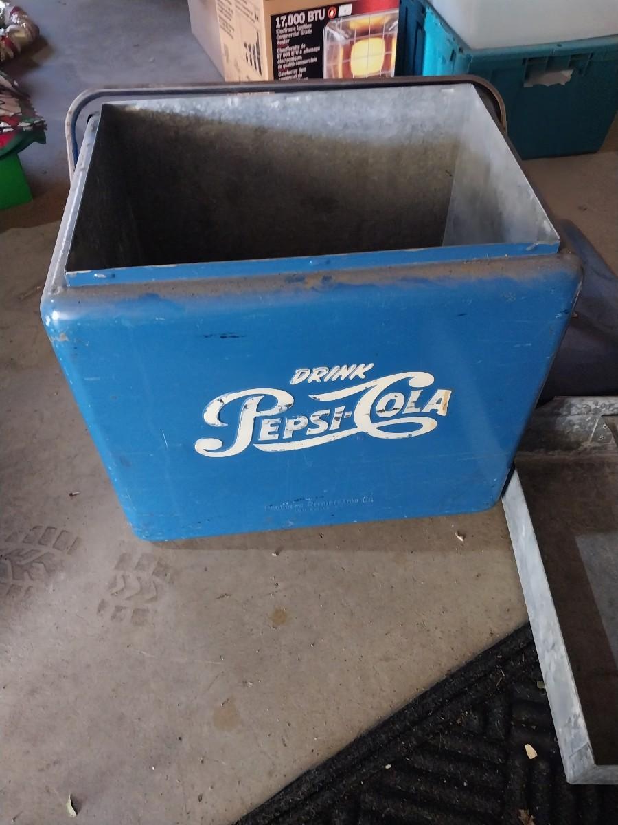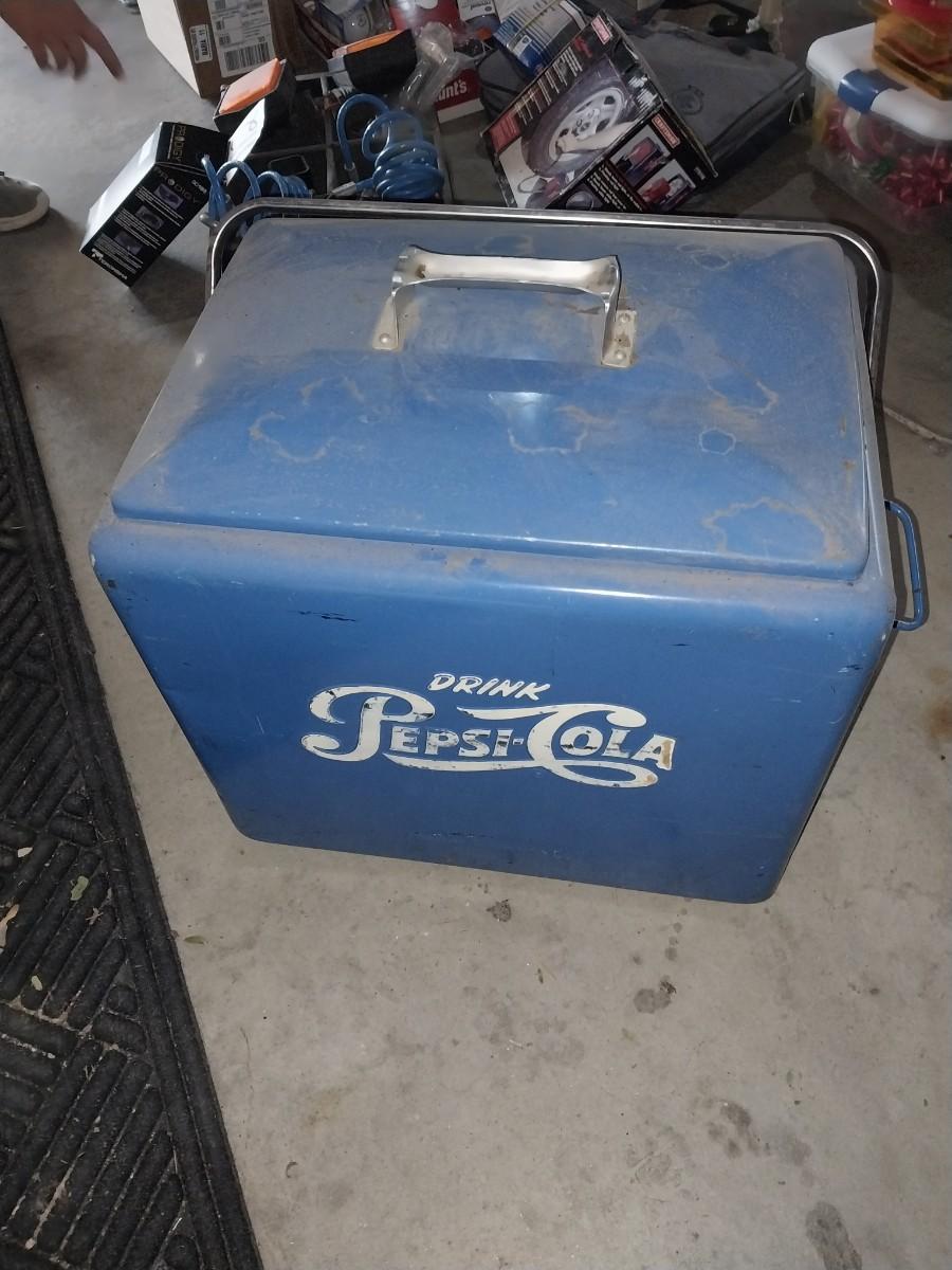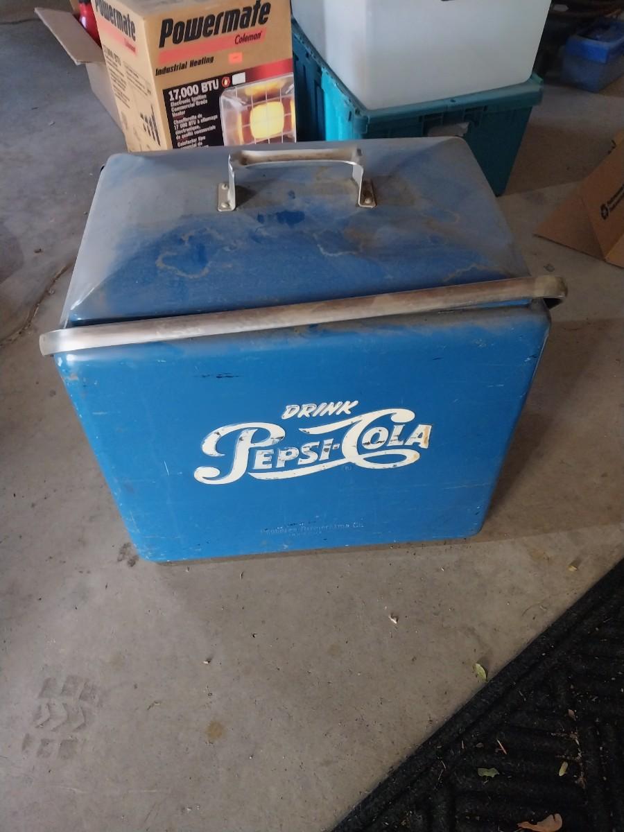 VINTAGE METAL PEPSI COLA COOLER WITH CARRY HANDLE
