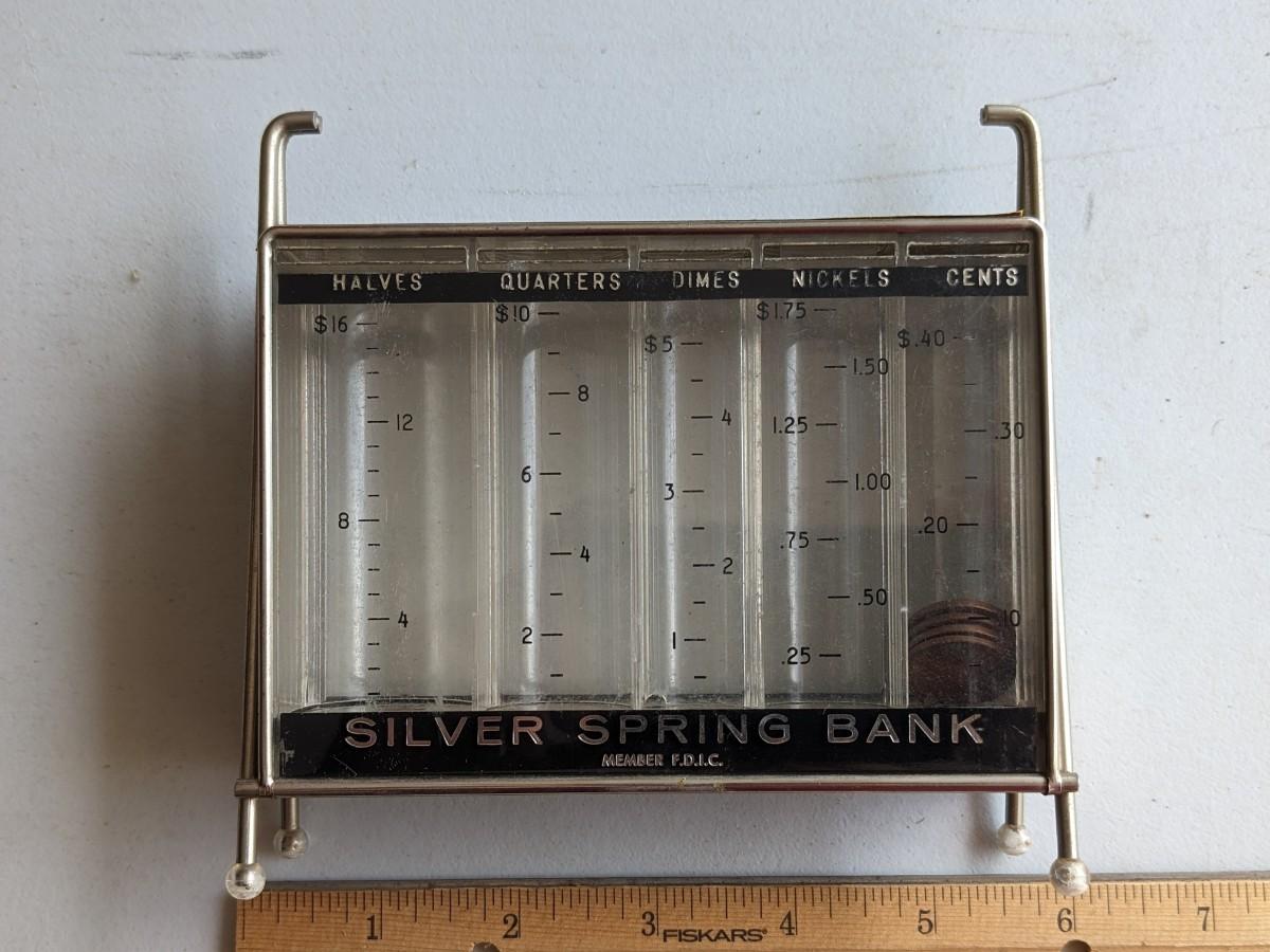 Vintage Metal & Plastic Silver Spring Bank Coin Bank MCM