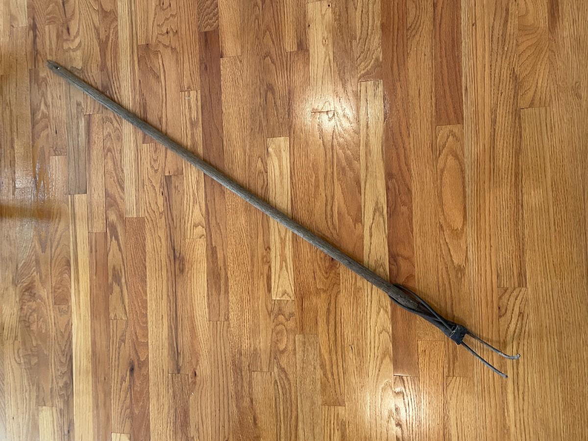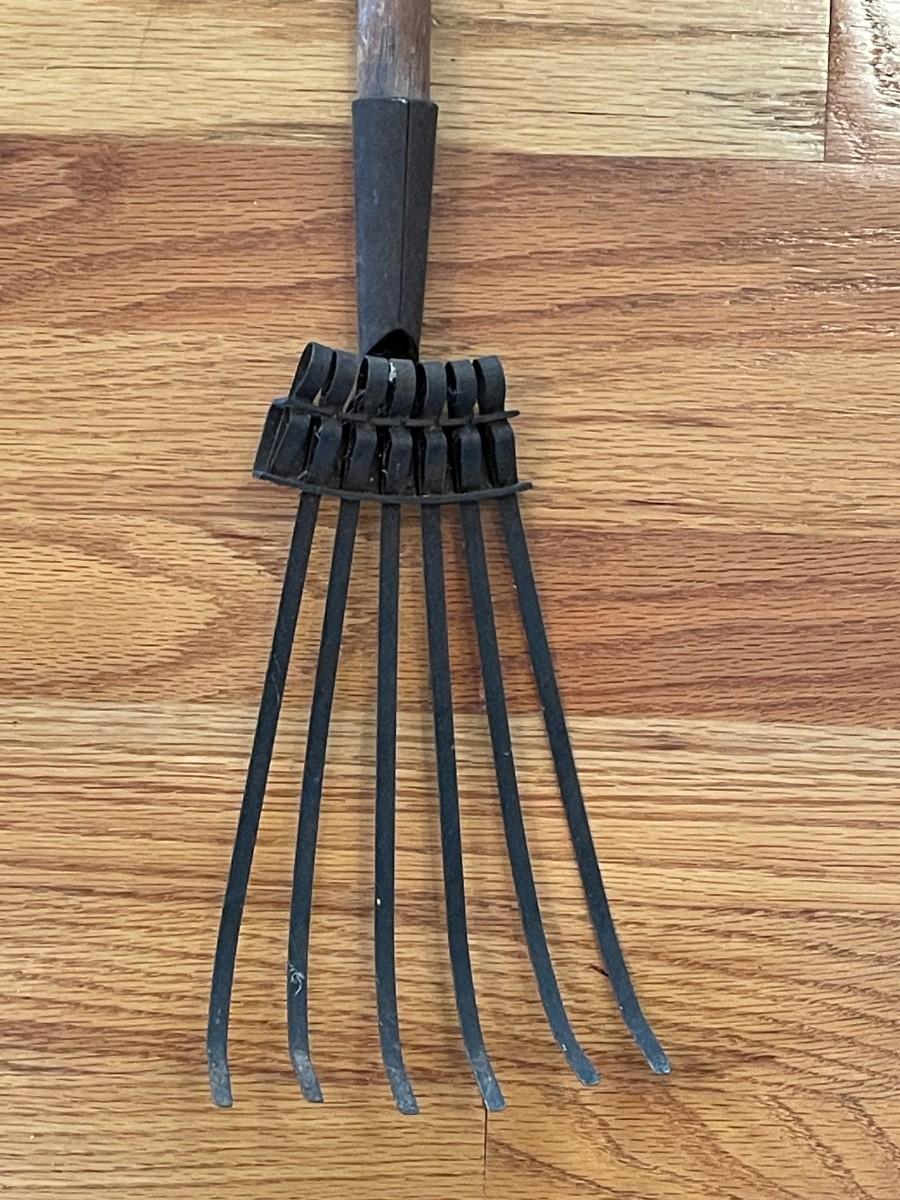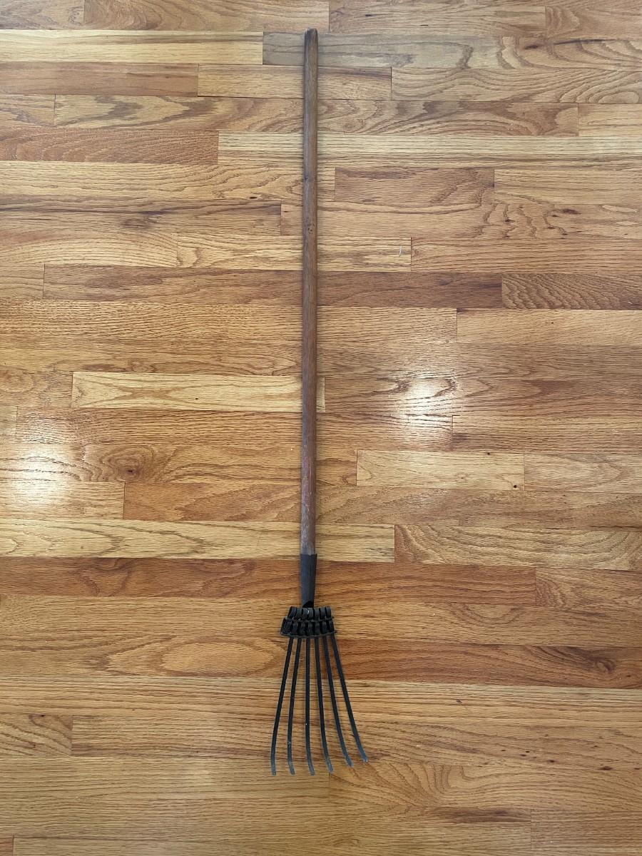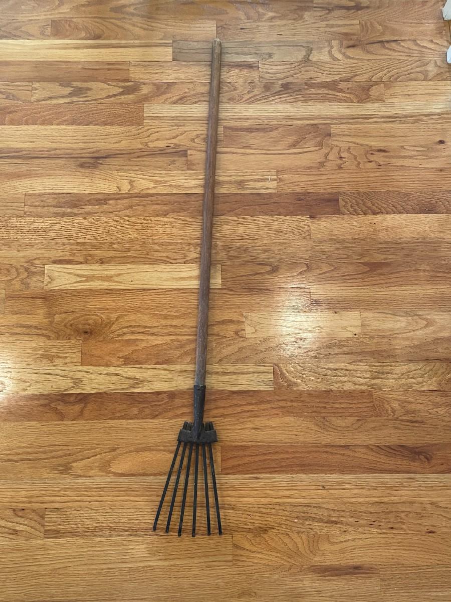 There should be 7 prongs, but one on the end is missing. It is about 44.5 long and would look great hanging on your wall to hang pictures or trinkets from. LOCAL PICKUP ONLY