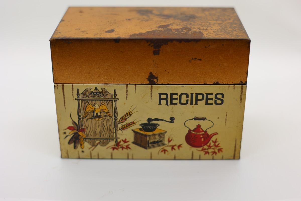 Vintage metal recipe box