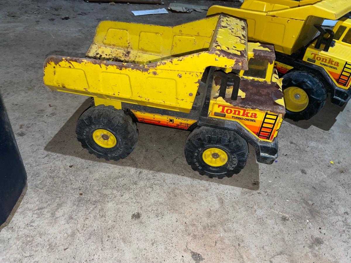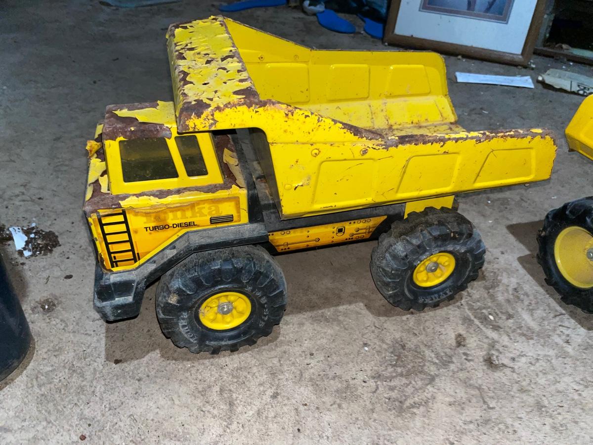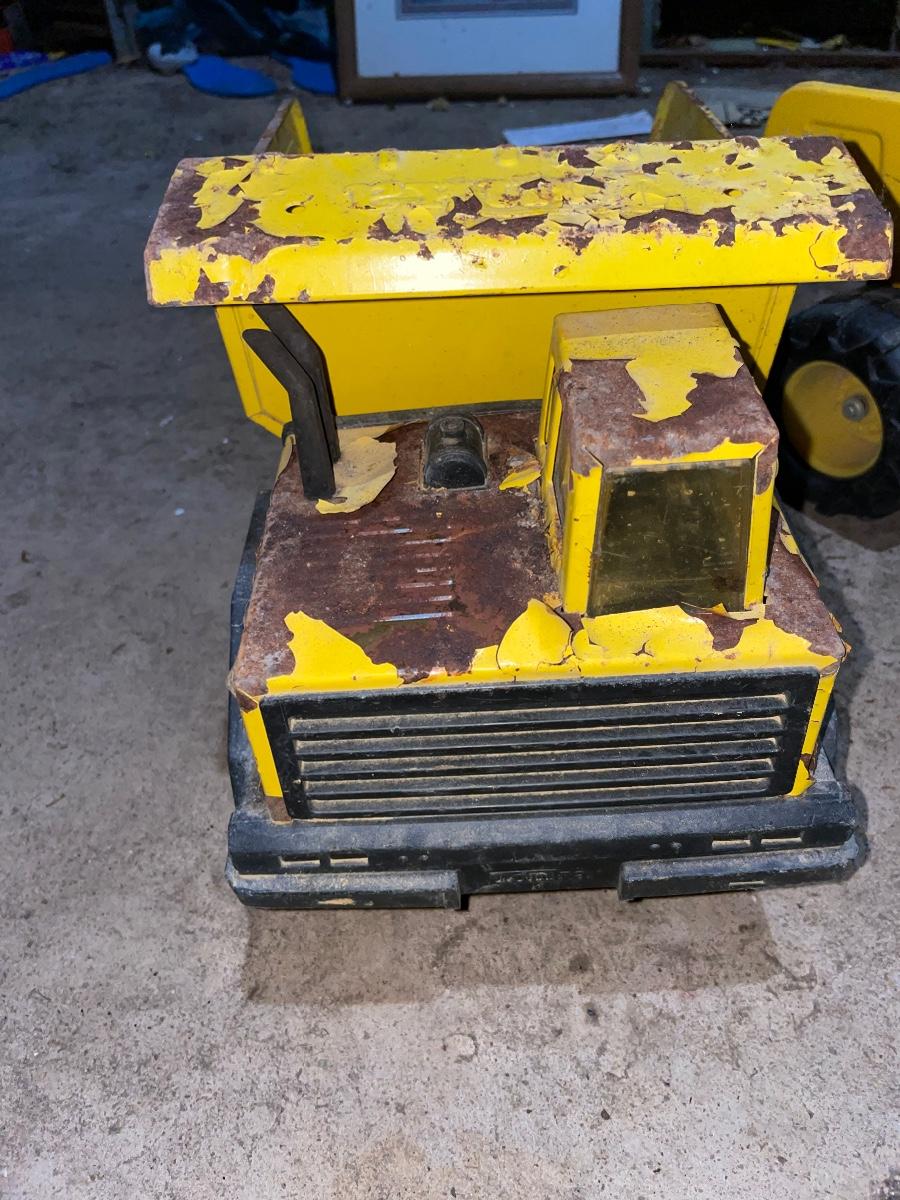 Collectible vintage metal tonka truck in less than fair condition. Shows rust and missing paint