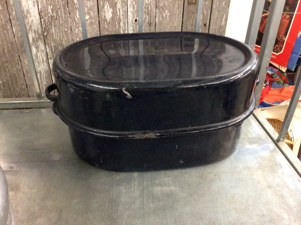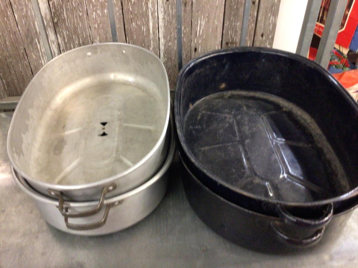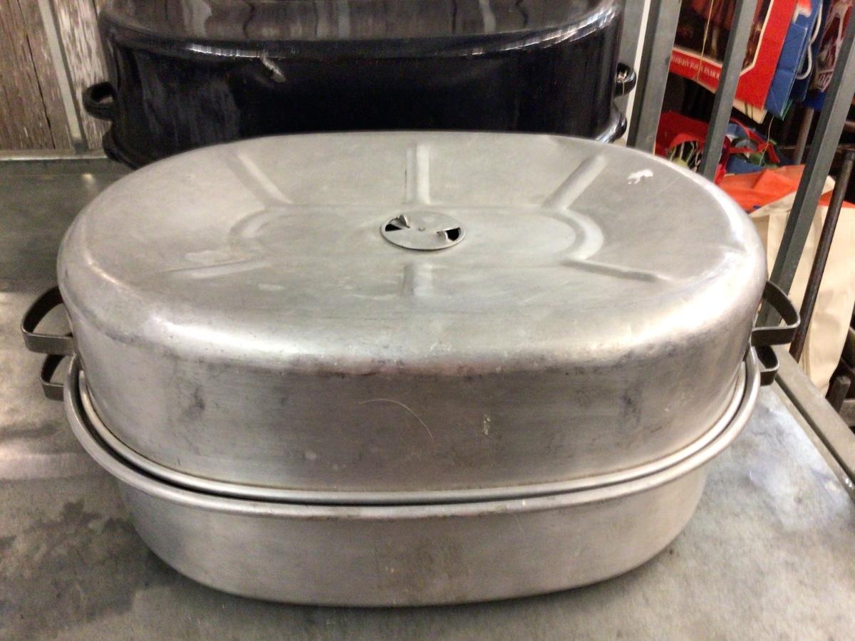 This is a great set of oven roasters. Both are in used condition but good condition.