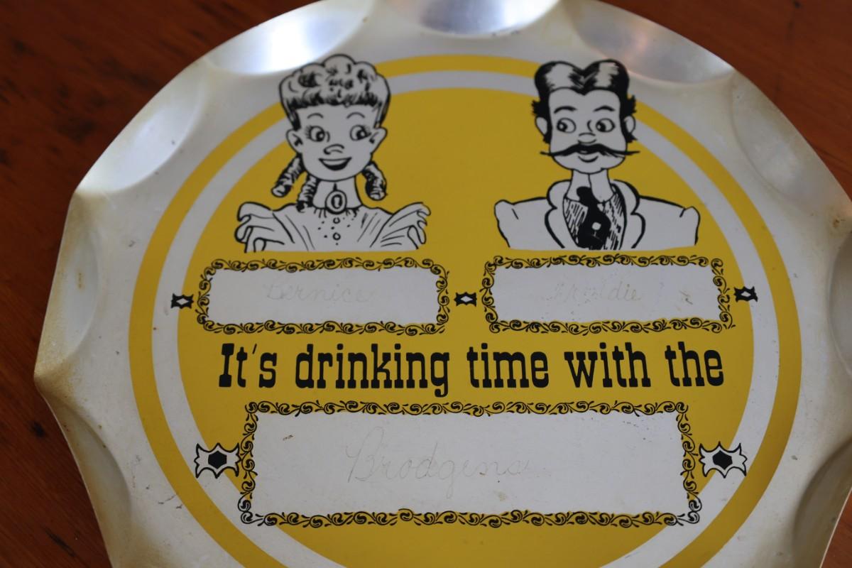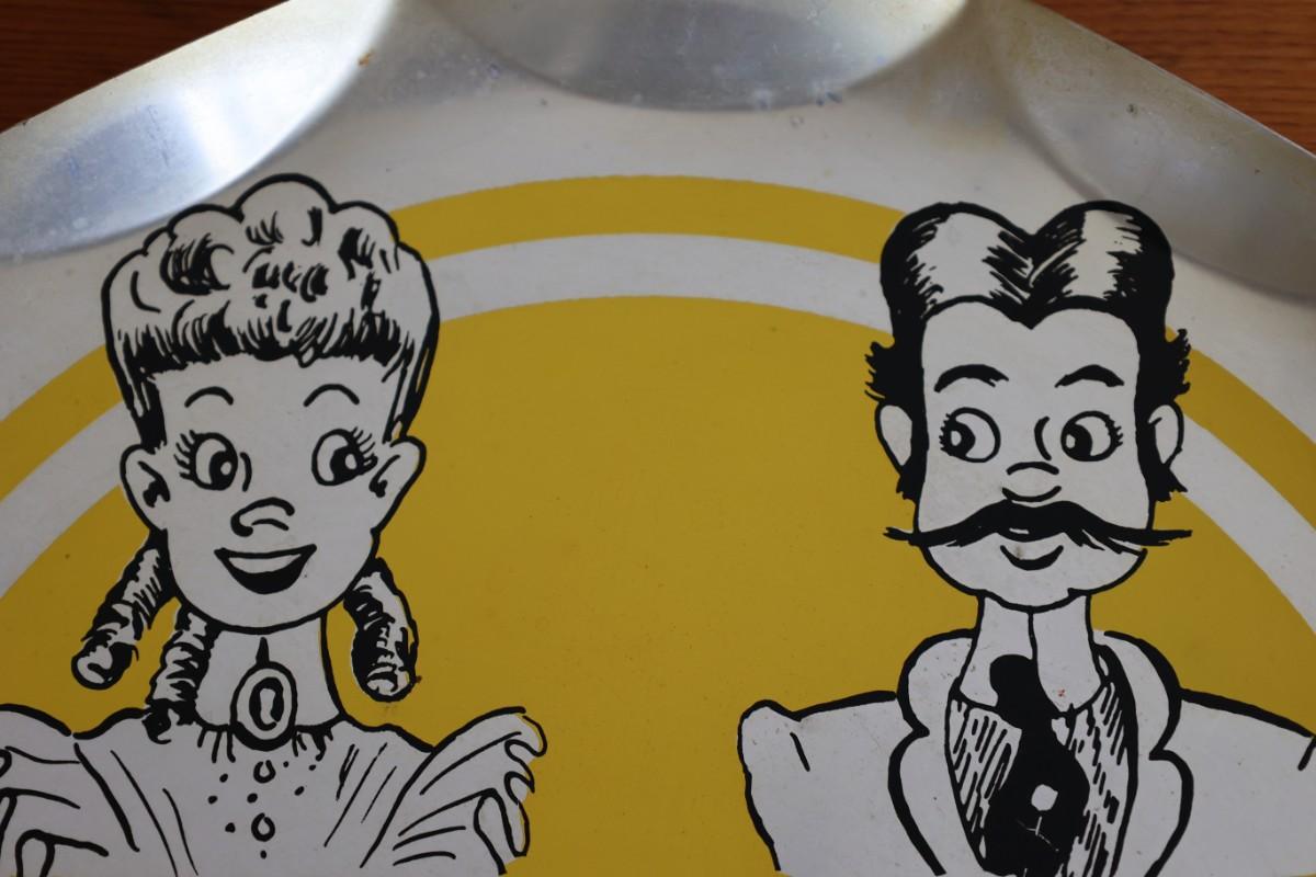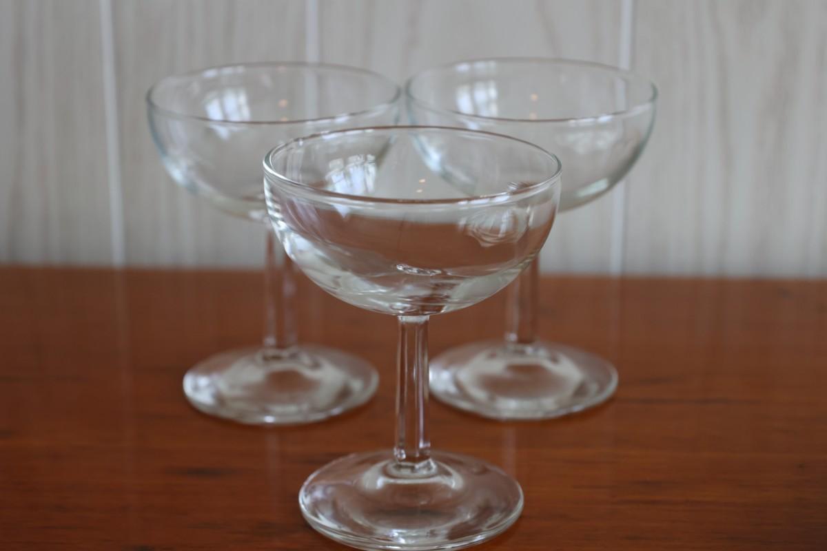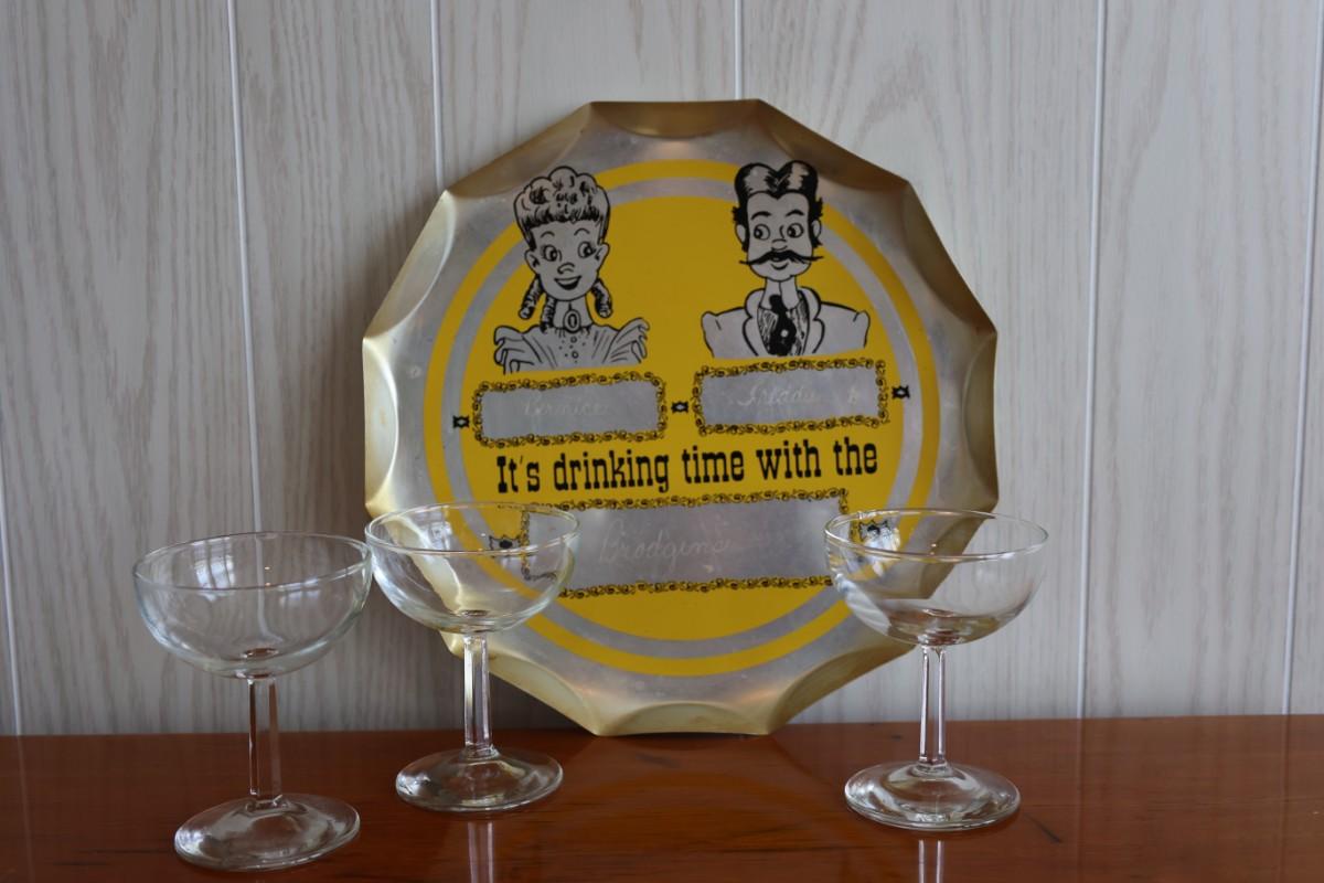 Vintage Metal Serving Tray With Set of 3 Coupe Glasses