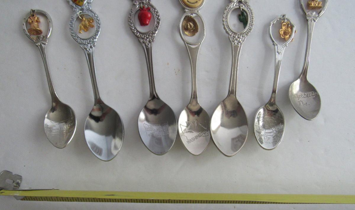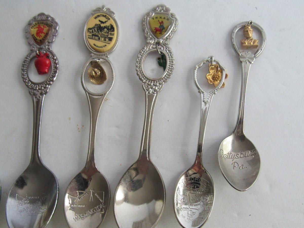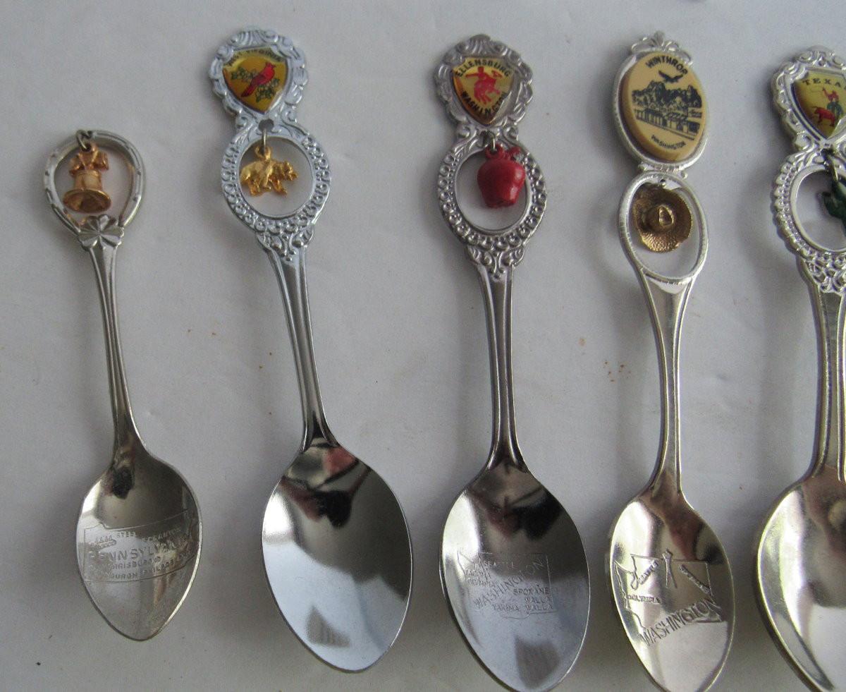 Vintage Metal Small Souvenir Spoons With Dangles