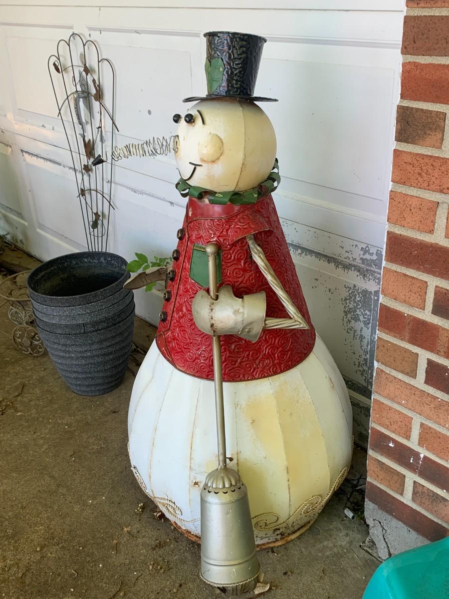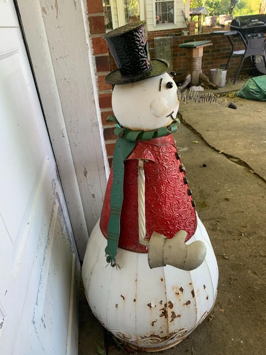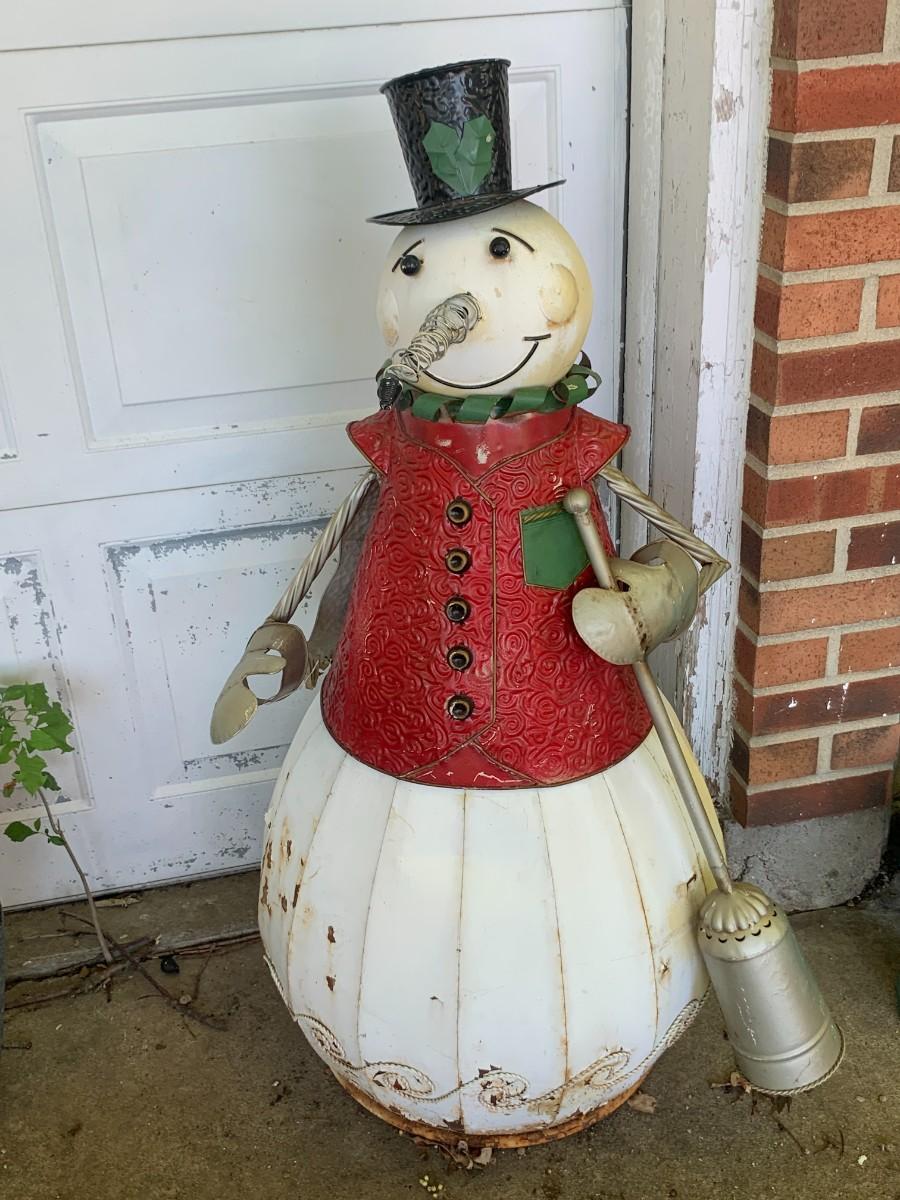 Listed is a vintage Metal Snowman about 36" tall. He appears to be in nice vintage condition.