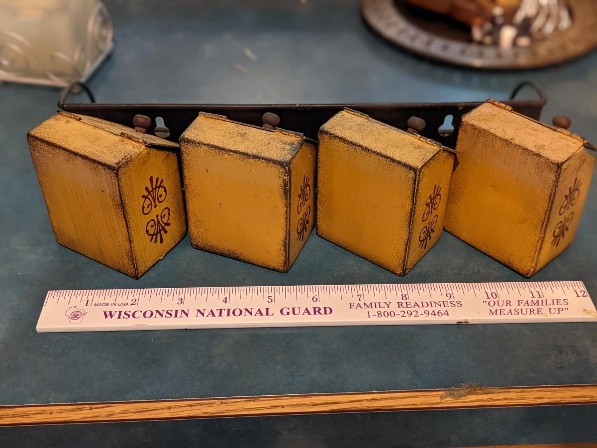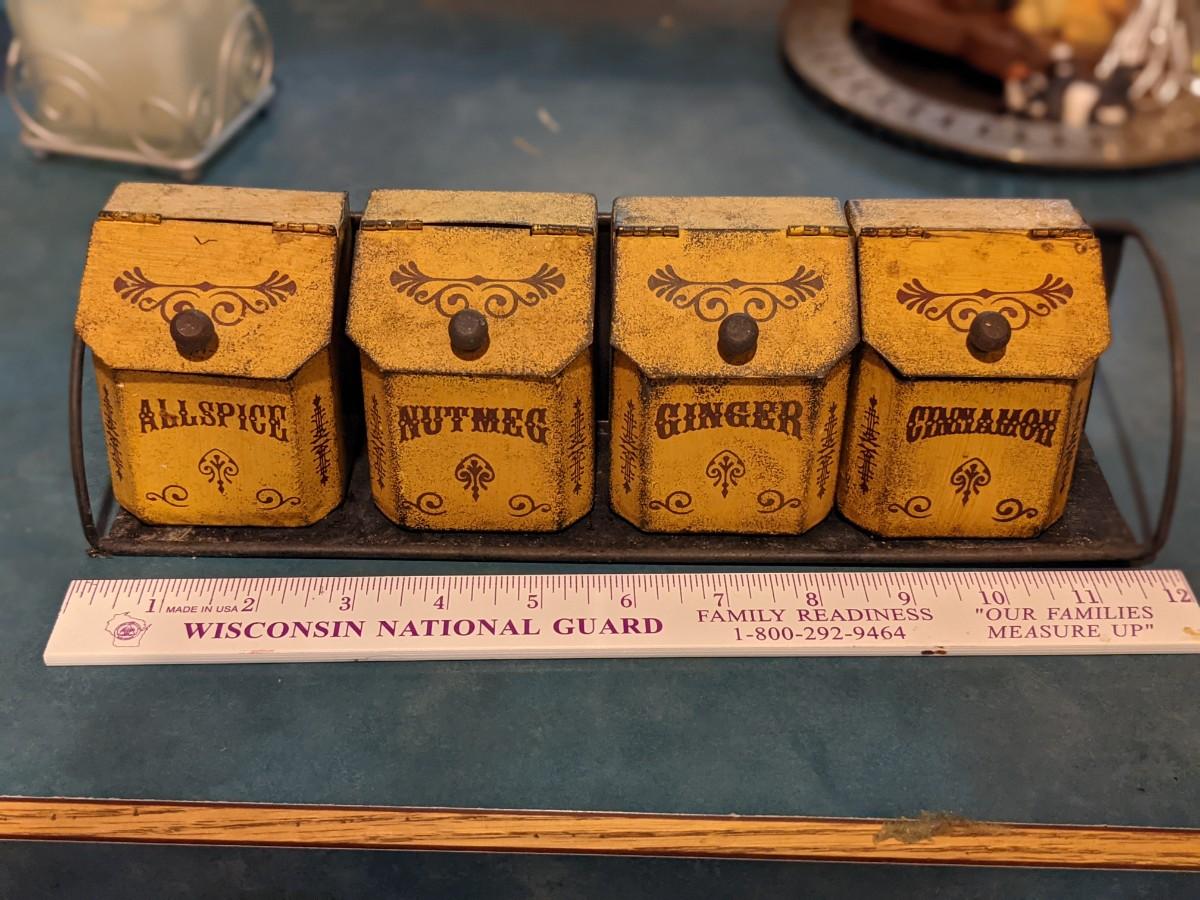 Vintage metal spice containers. So Adorable!