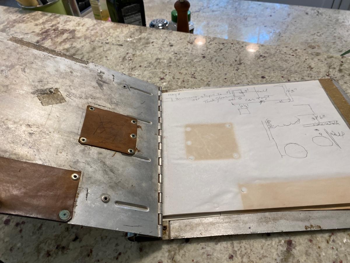 Vintage Metal Sta-Open Clip Board with Leather Pencil Holder / Flap and Kerr Drawings