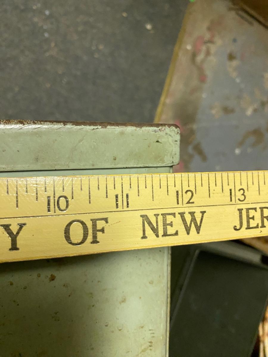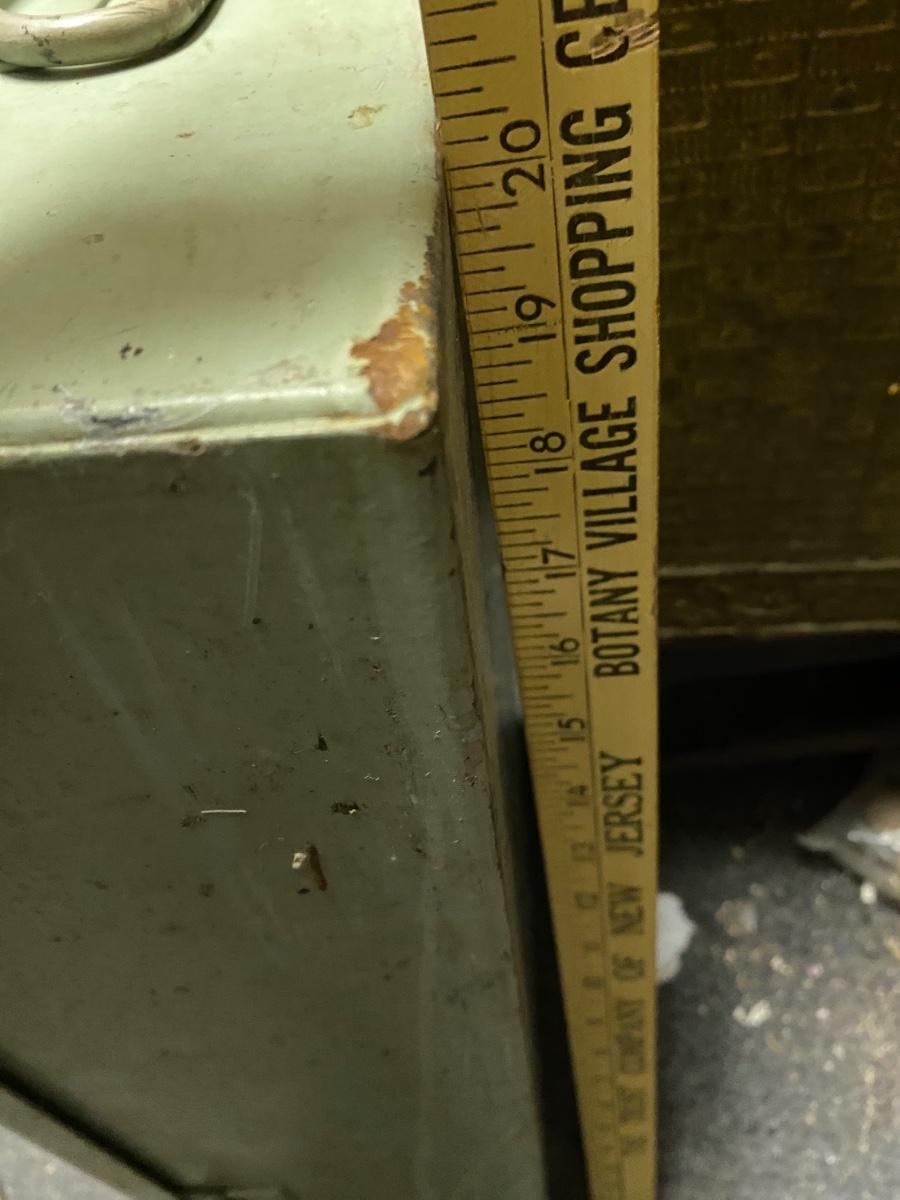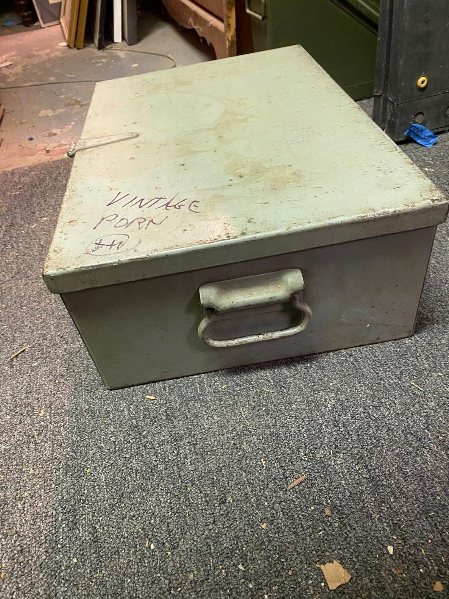 Vintage METAL STORAGE BOX .VEry Heavy. Has a latch that you can put a lock on. Measures appprox. 20Lx6x12W