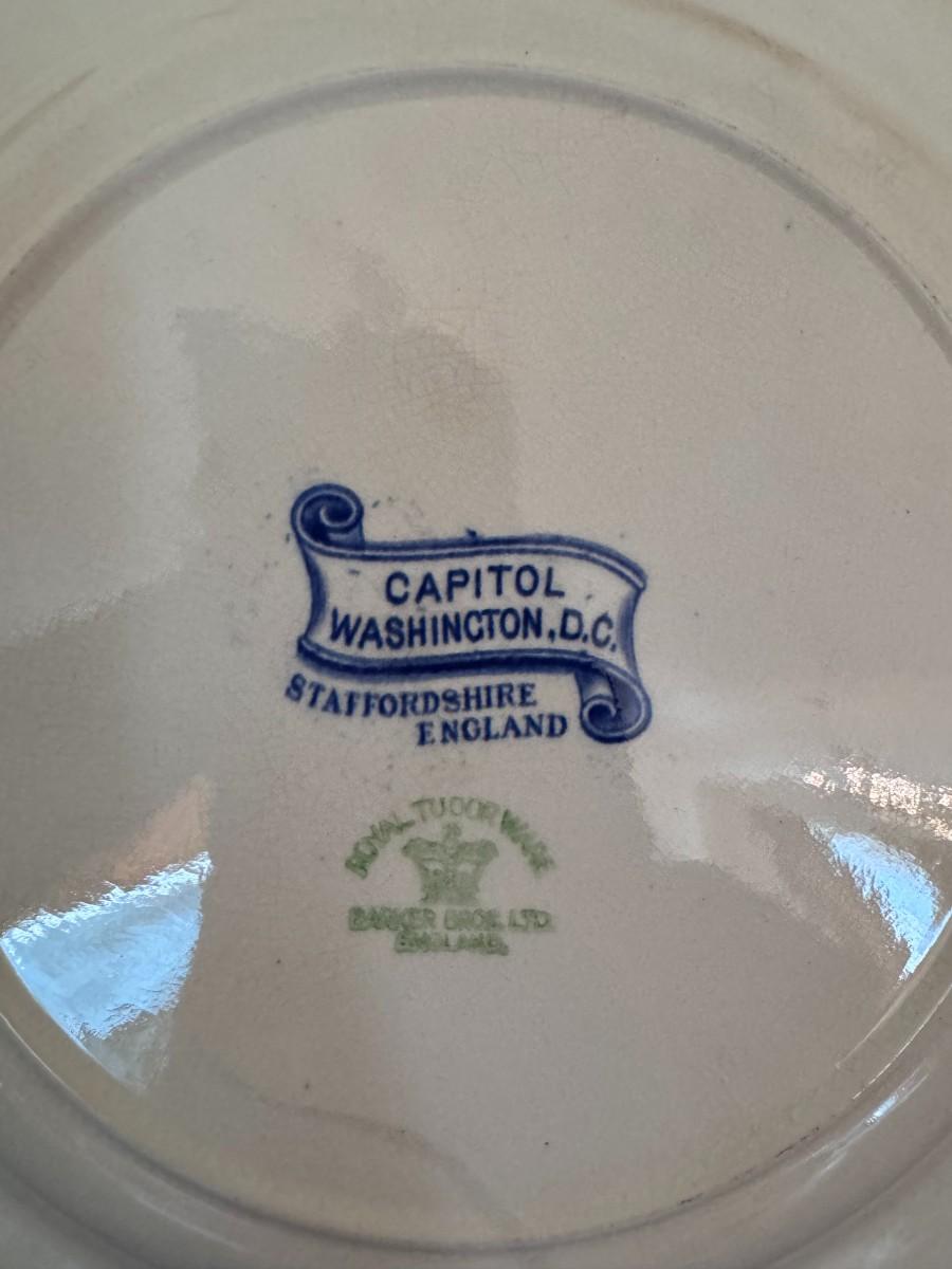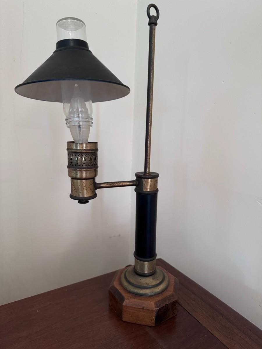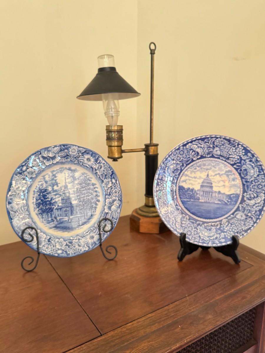 Vintage Metal Toleware Table Lamp  w/ 2 Staffordshire “Liberty Blue” Plates
