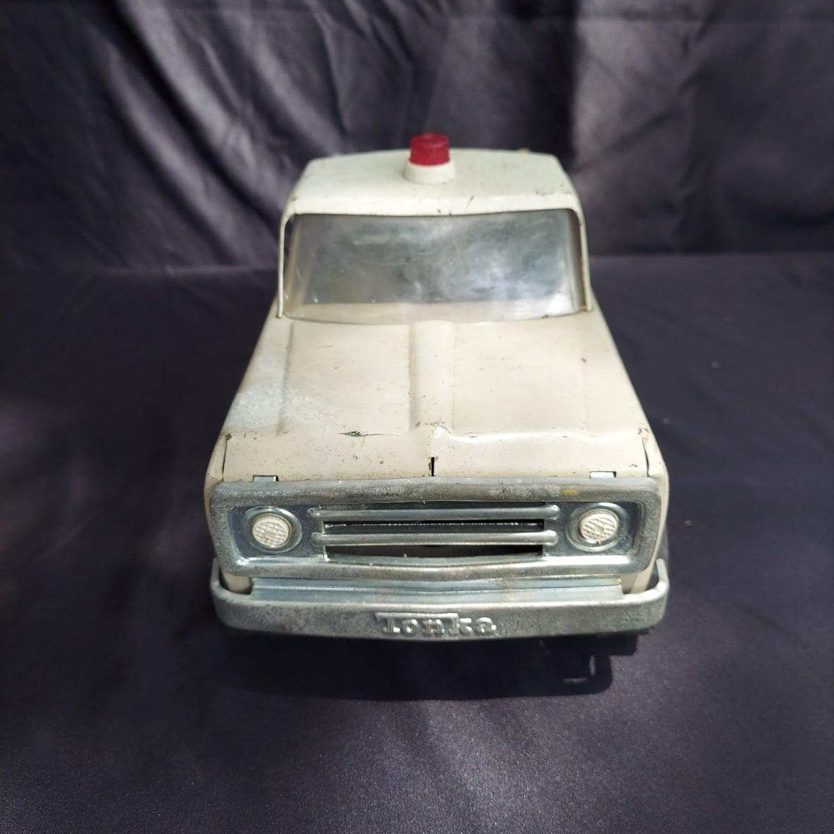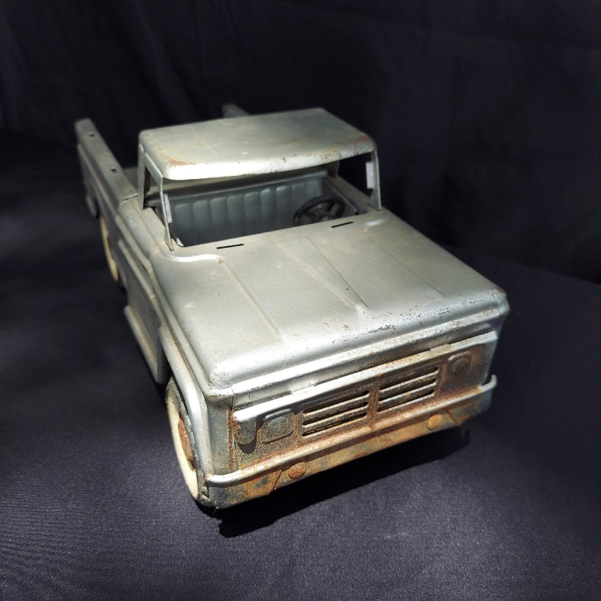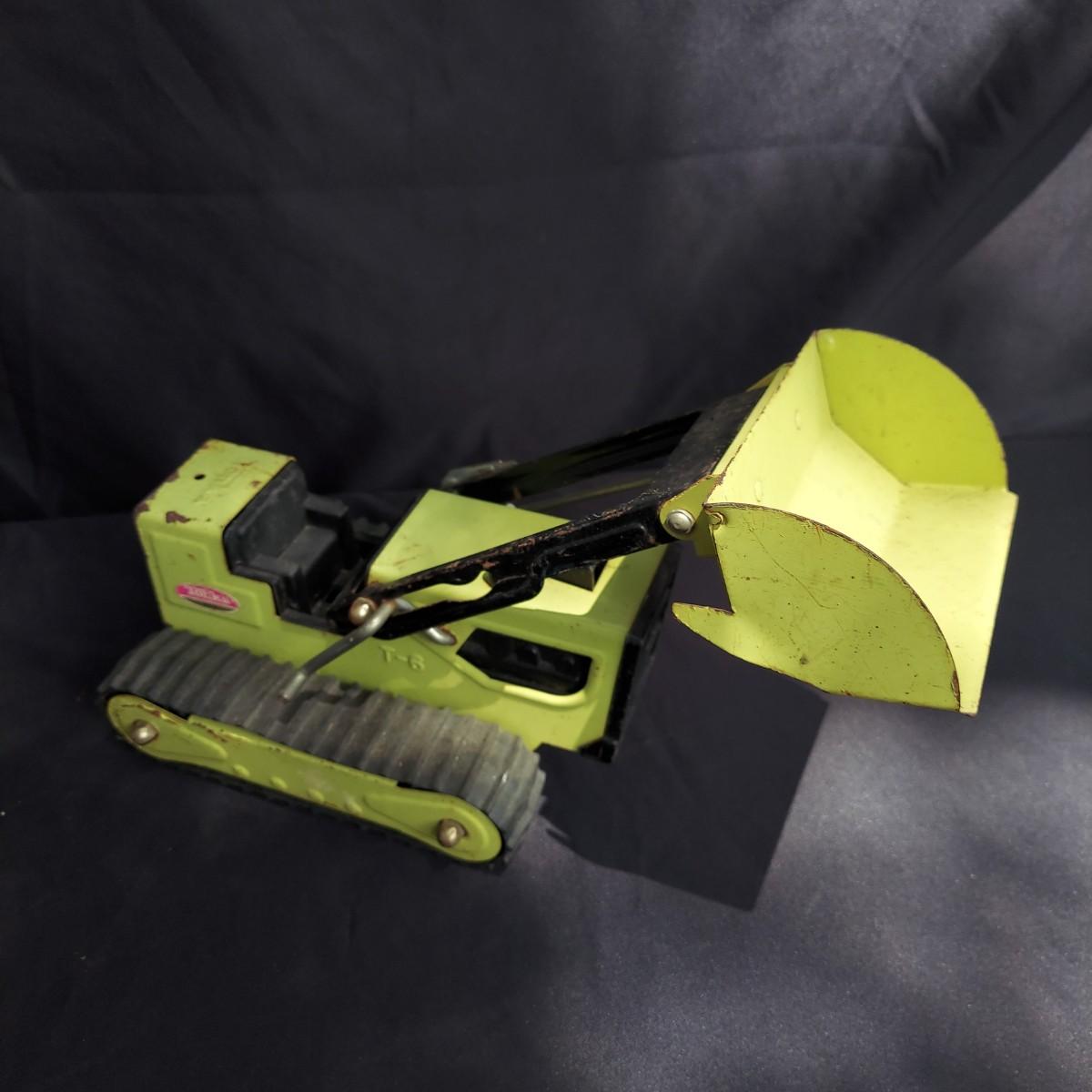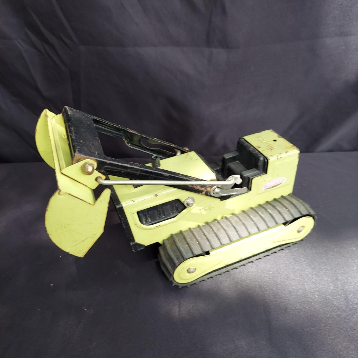 There are seven metal Tonka trucks plus two small trucks. Included are a grader, two pickup trucks, a dump truck truck, two wreckers and a bulldozer. The largest is the grader that is 7.5” x 18" x 8”H. There is overall wear, including rust, due to age on all pieces. Shipping available