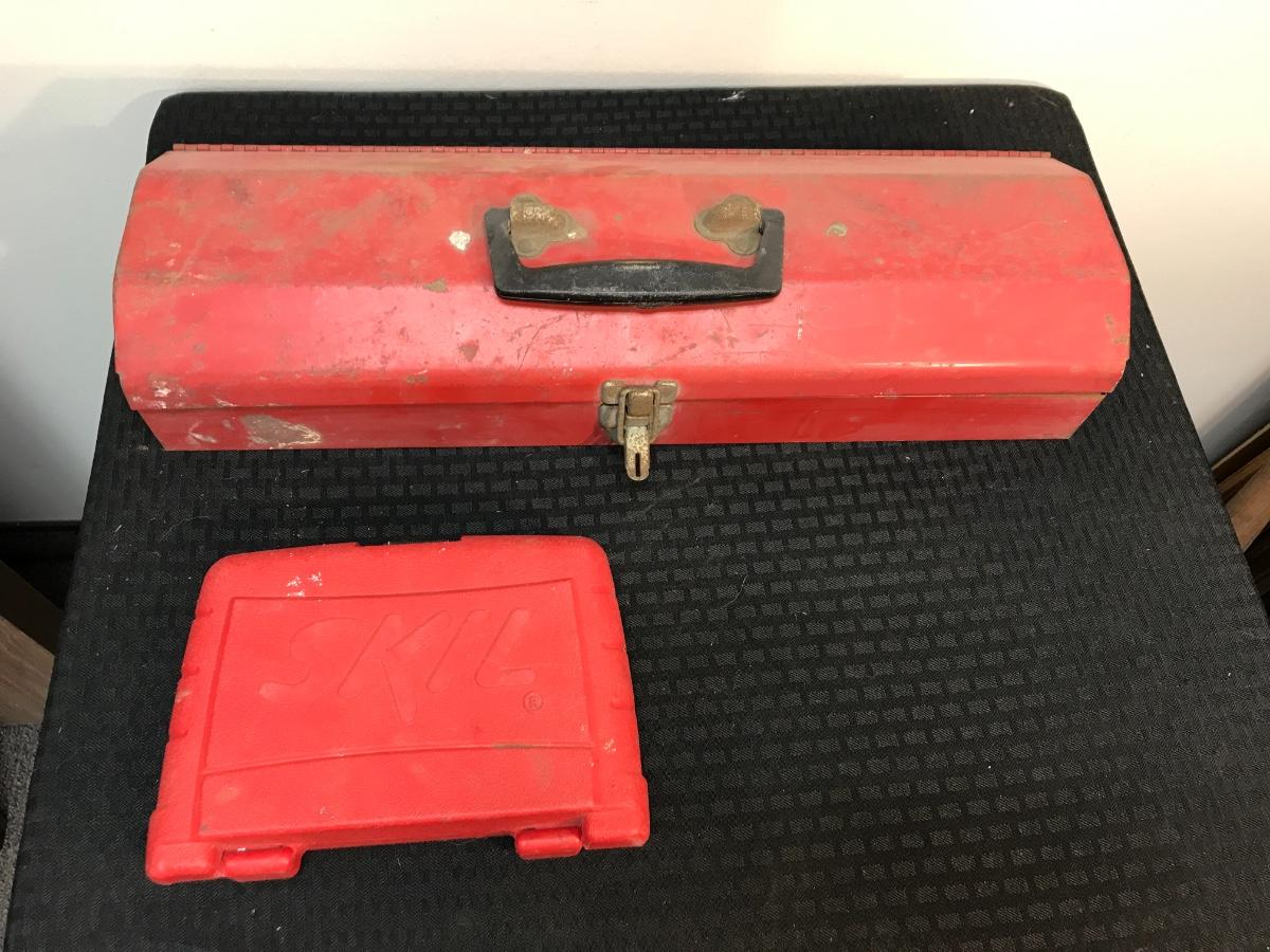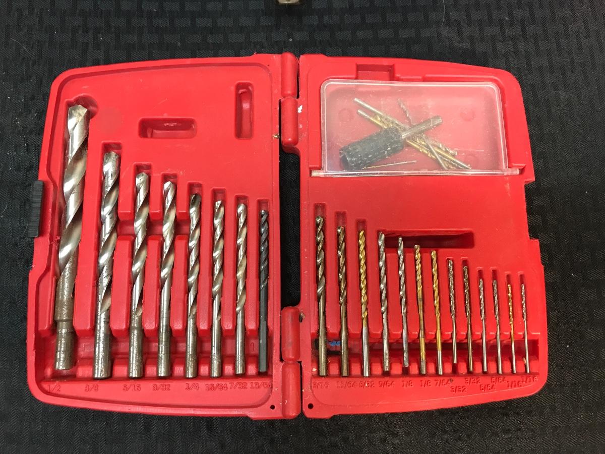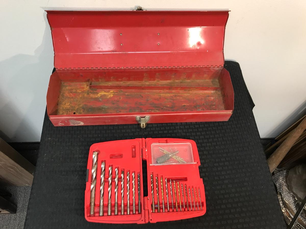 Vintage Metal Tool Box and Set of Drill Bits, there is some vintage wear to the tool box, but there is no significant damage to either pieces and is in good usable condition. The drill bits appear to be complete, check pictures for more details.