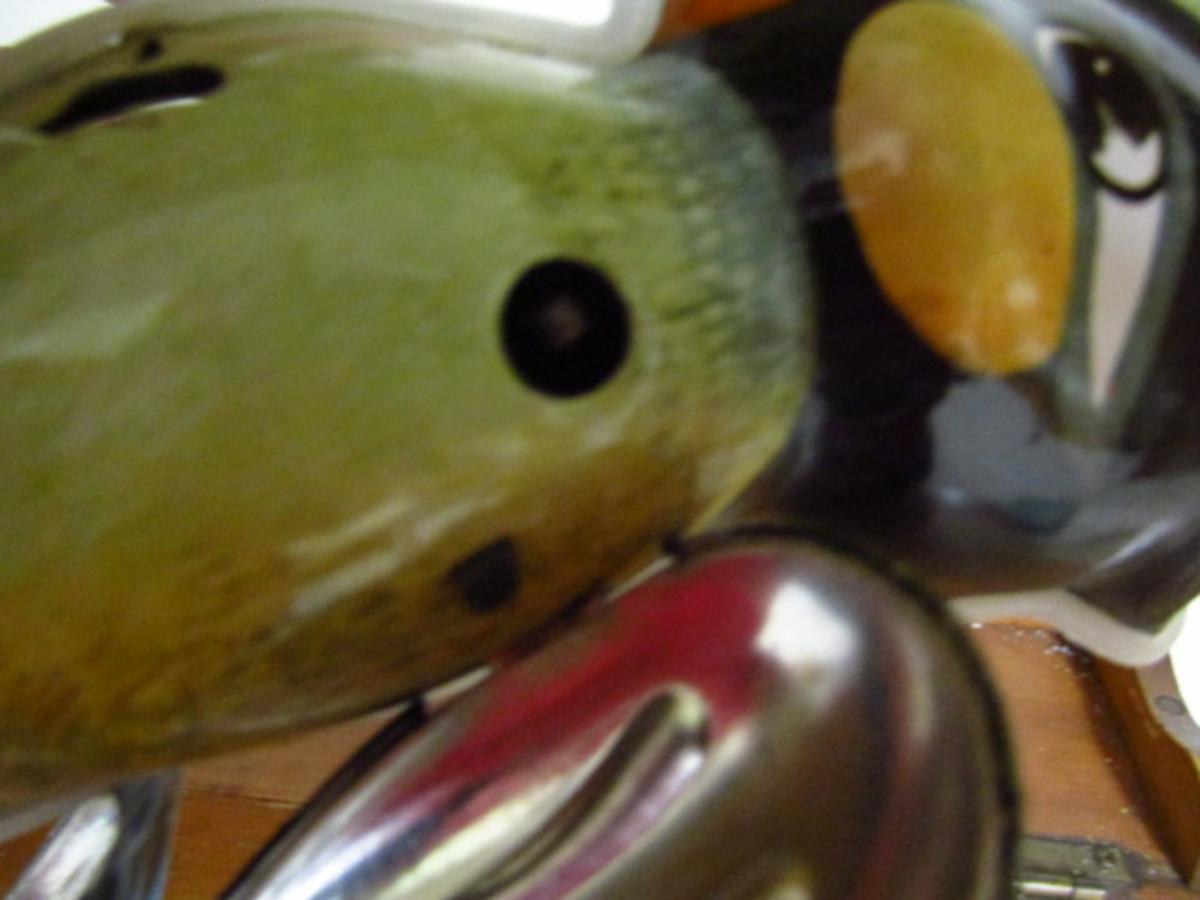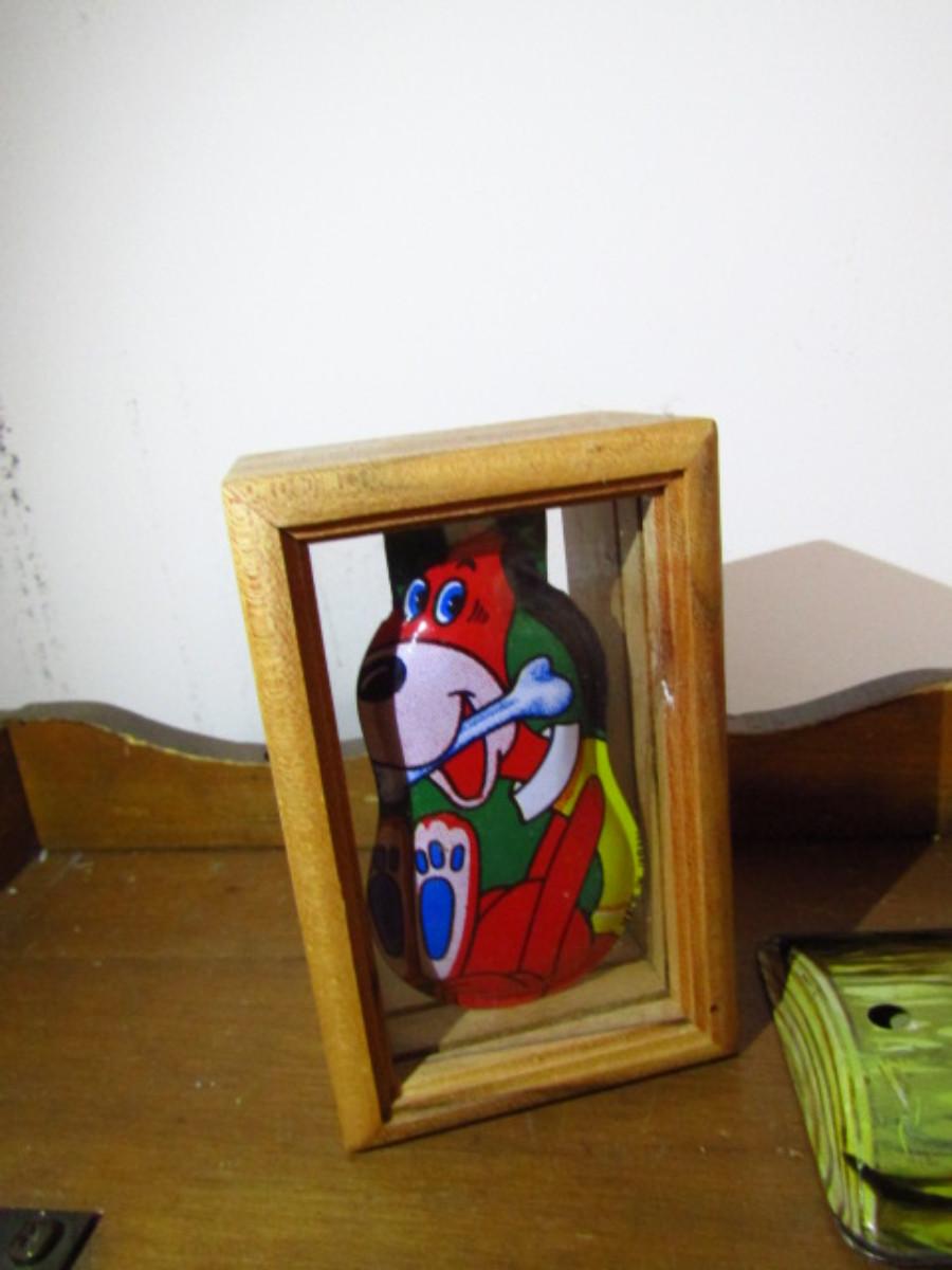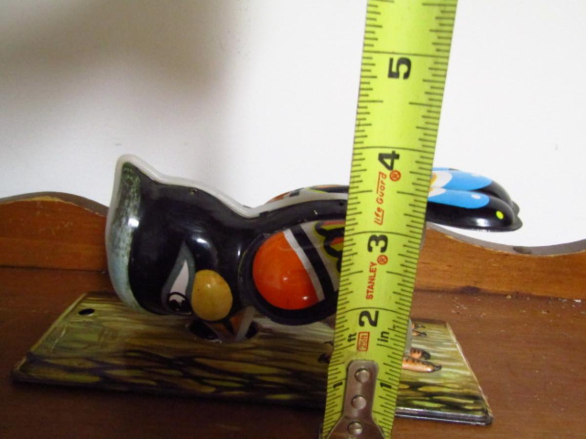 Vintage Metal Toys and Pieces. Woodpecker is a wind-up. Key is missing, so the item is untested. The framed metal dog with bone piece appears to be part of a larger toy.