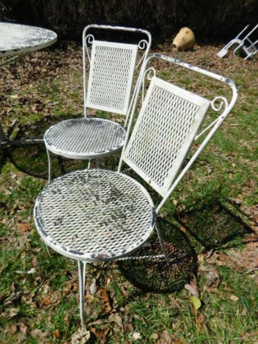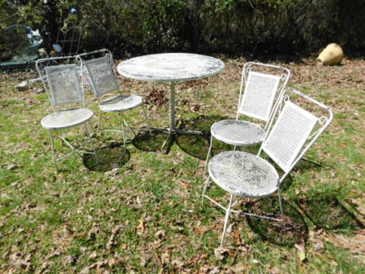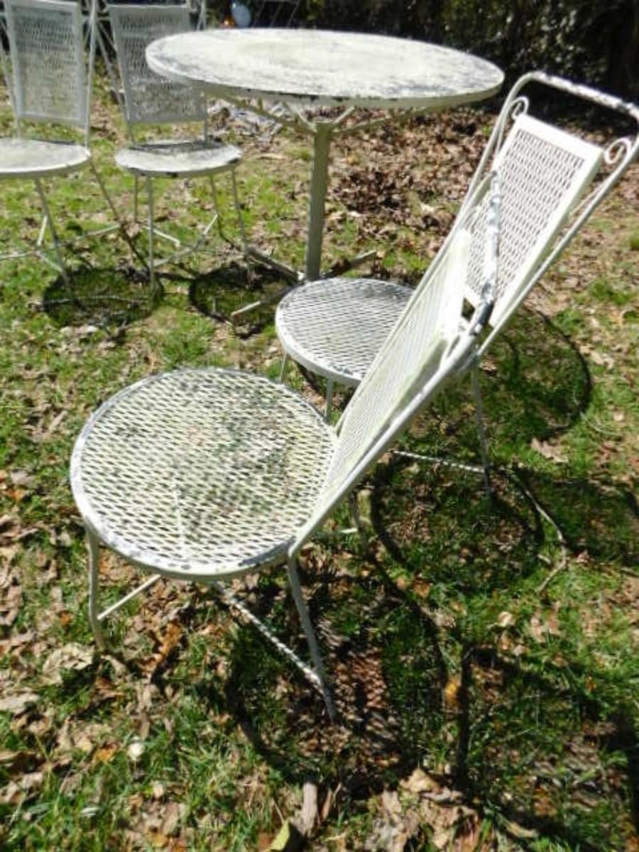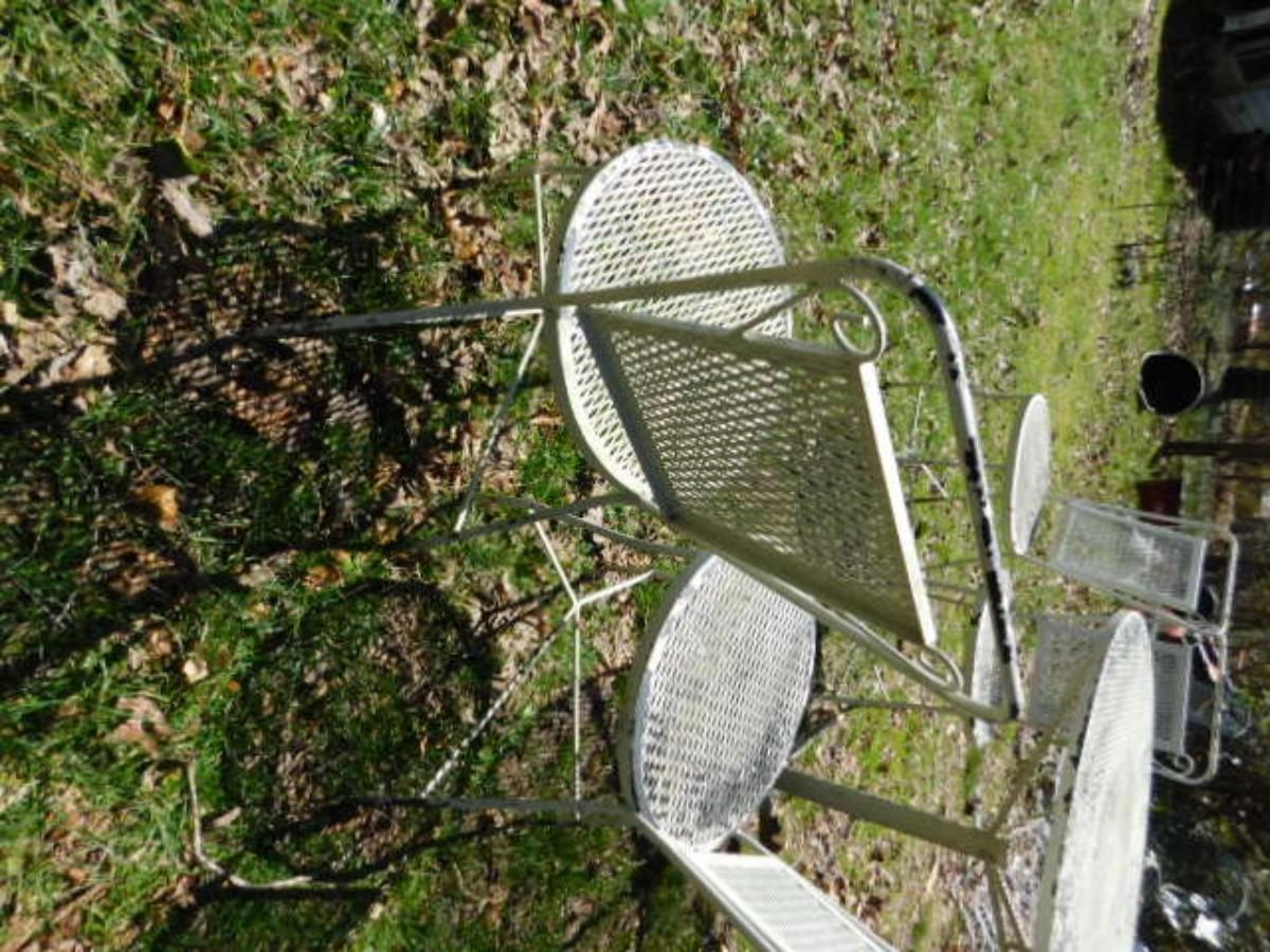 Vintage Metal Wire and Mesh 5pc Outdoor Patio Set. Has some paint wear as shown