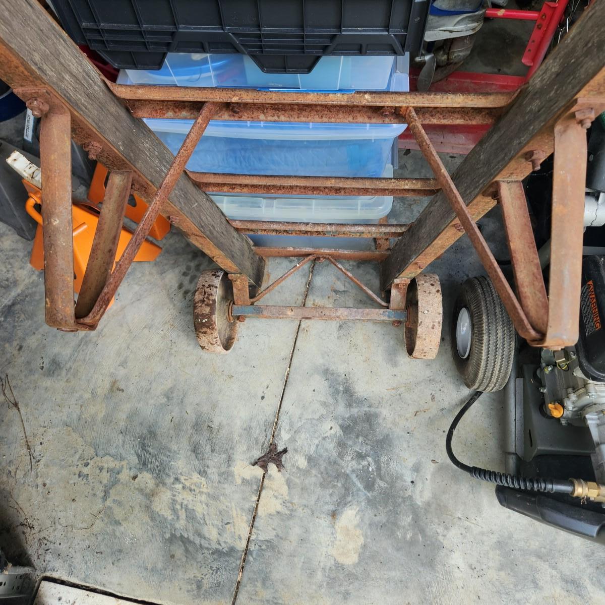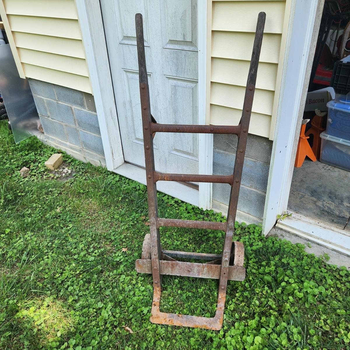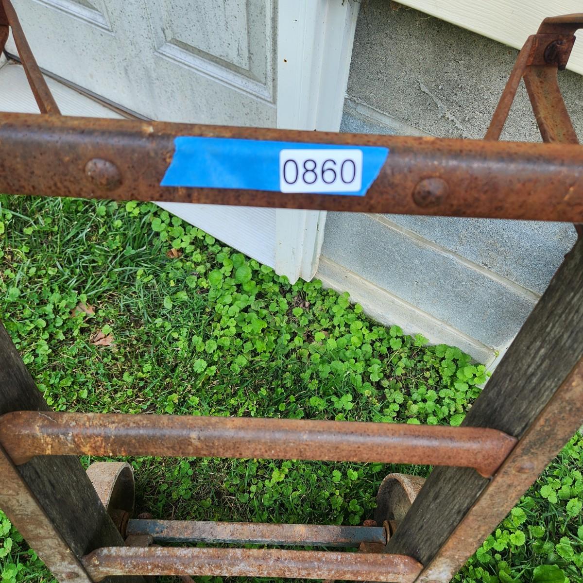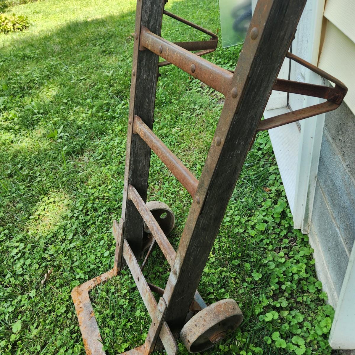 Vintage Metal & Wood Hand Truck Two Cast Iron Wheels