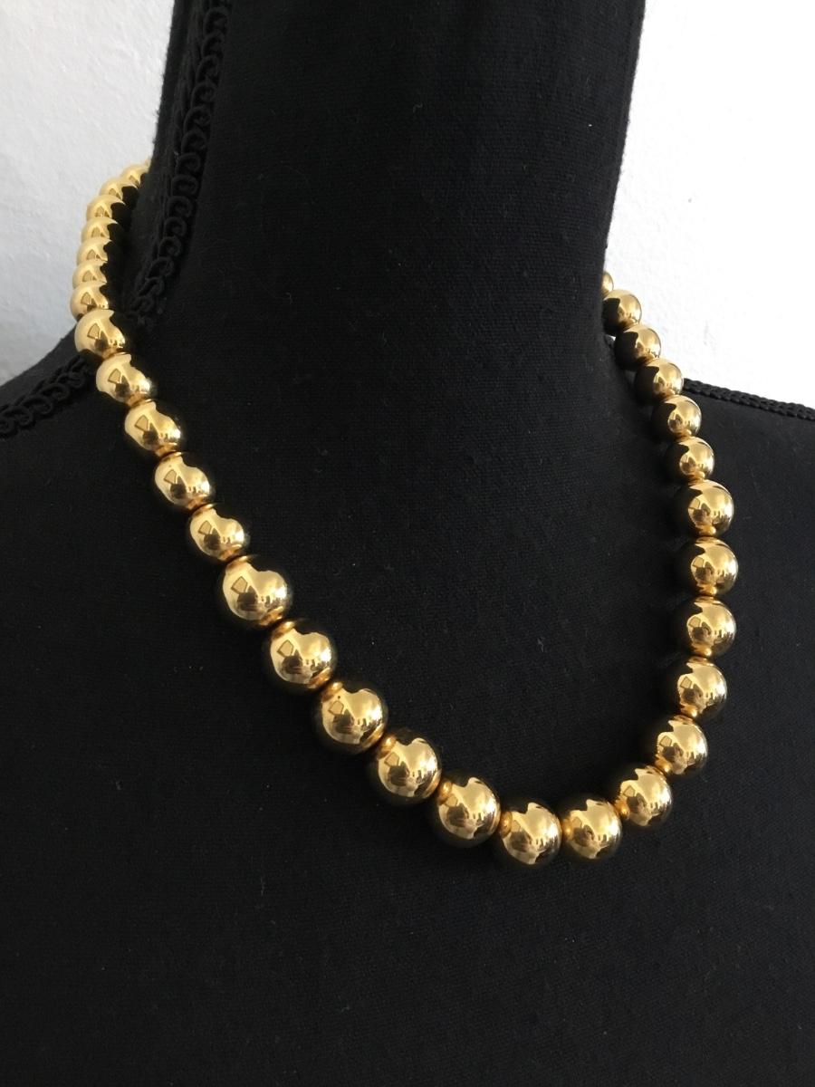 Vintage metallic gold, toned beaded necklace