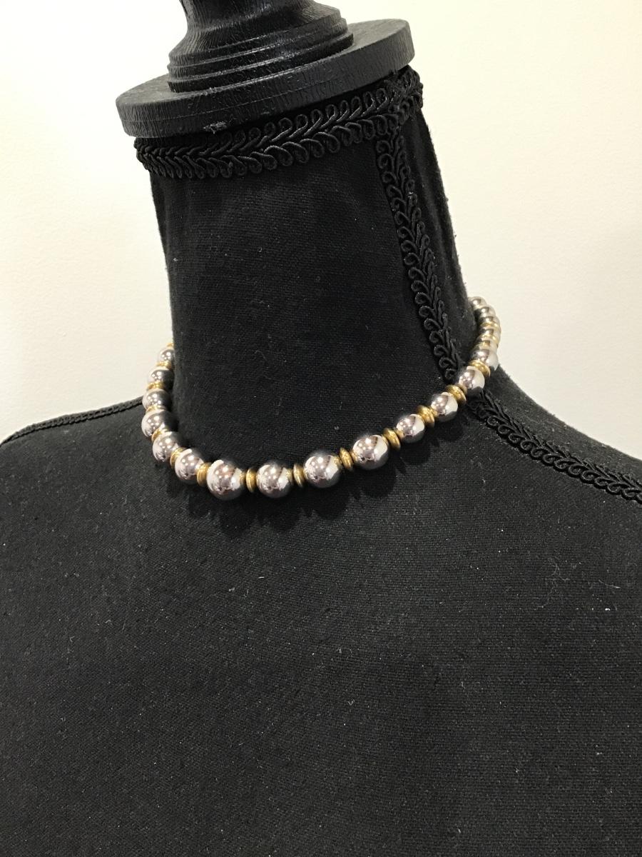 Vintage, metallic, silver and gold bead Liz Claiborne choker