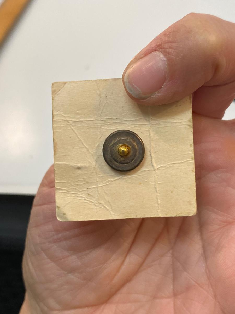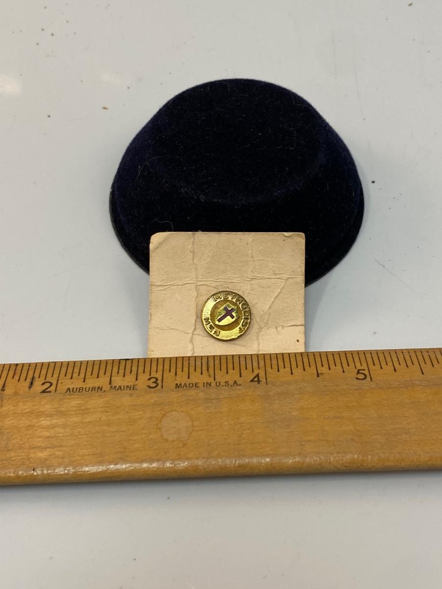 Vintage Methodist Men Gold Tone Red Cross Lapel Pin. On small cardboard card.