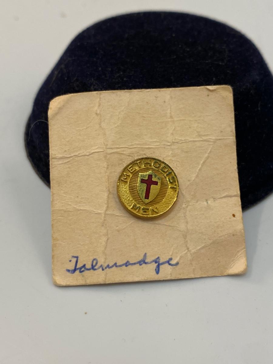 Vintage Methodist Men Gold Tone Red Cross Lapel Pin