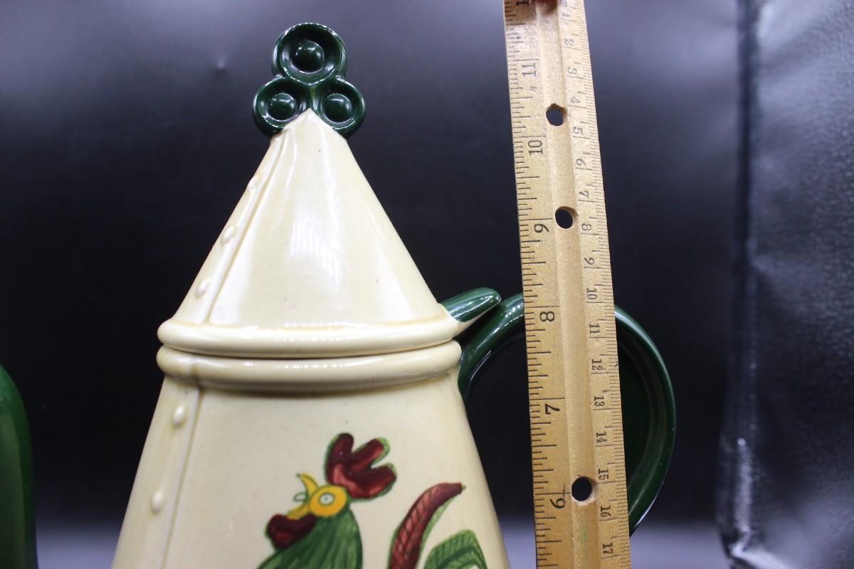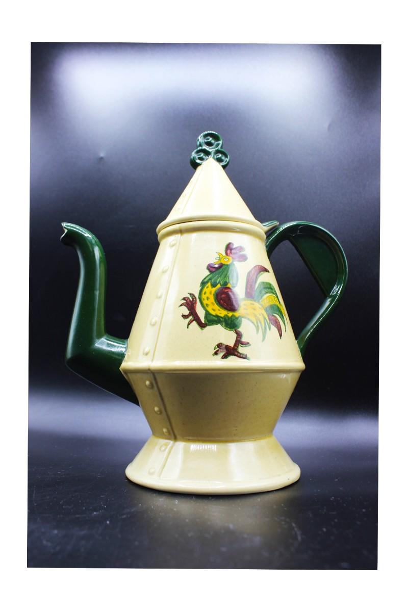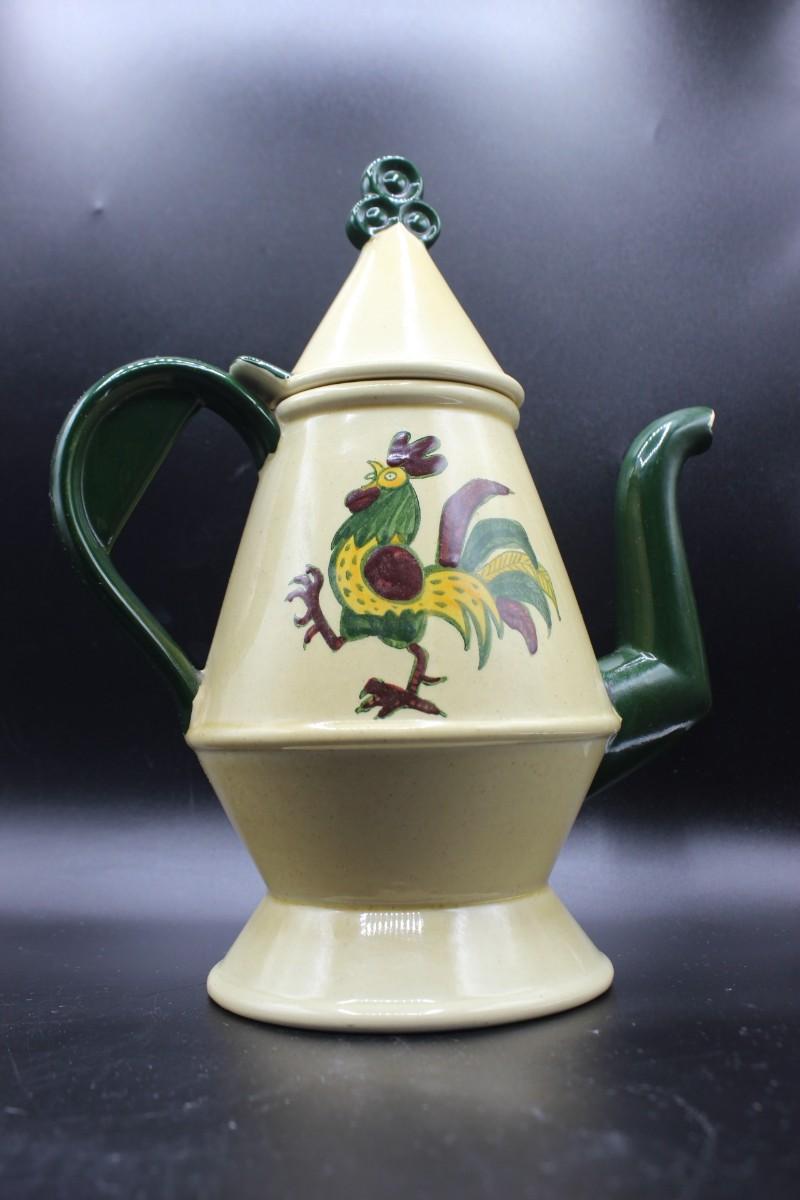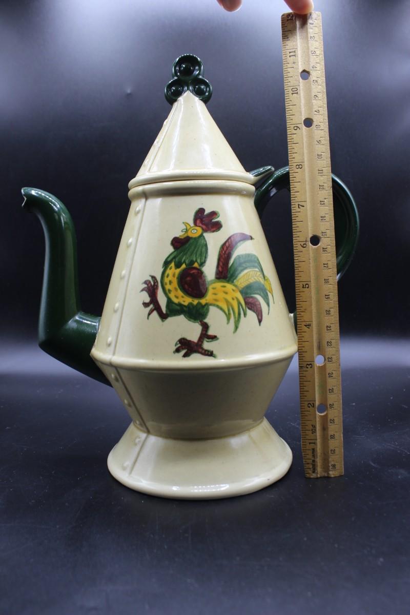 Vintage Metlox Poppytrail California Provincial Rooster Vernon Ware Coffee Teapot, there are no significant cracks or chips to the piece and is in good vintage condition. Check pictures for more details and for sizing.